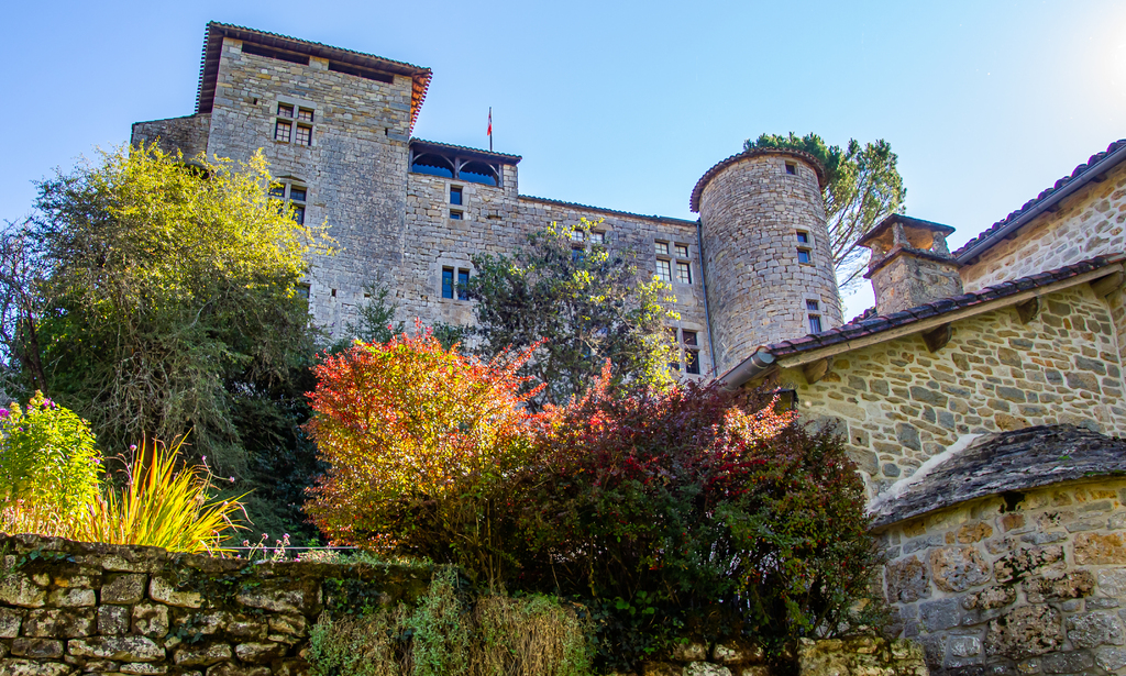Montée par Garrissoles, Caude Combe jusqu'au Château et l'église St Martin de Cas par un beau soleil.