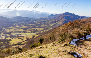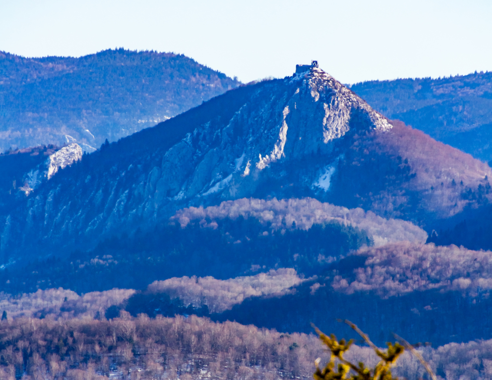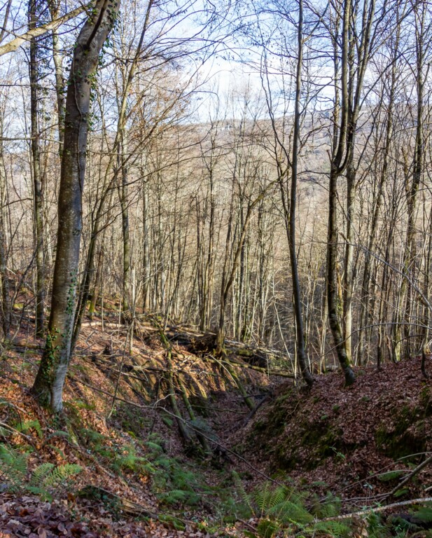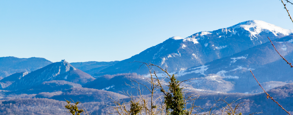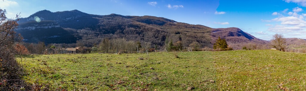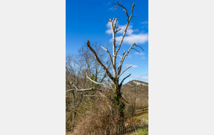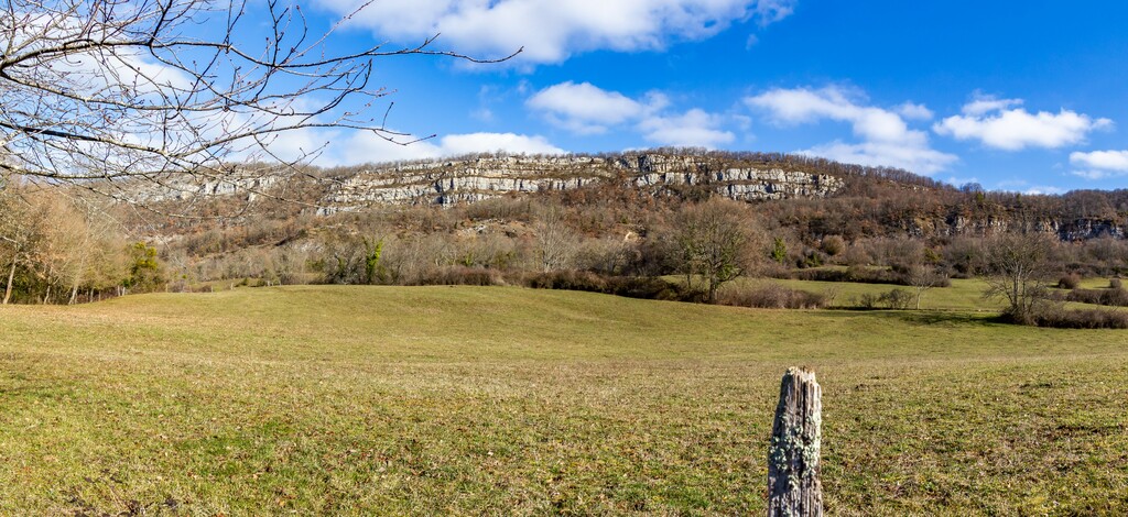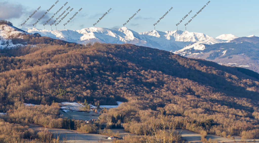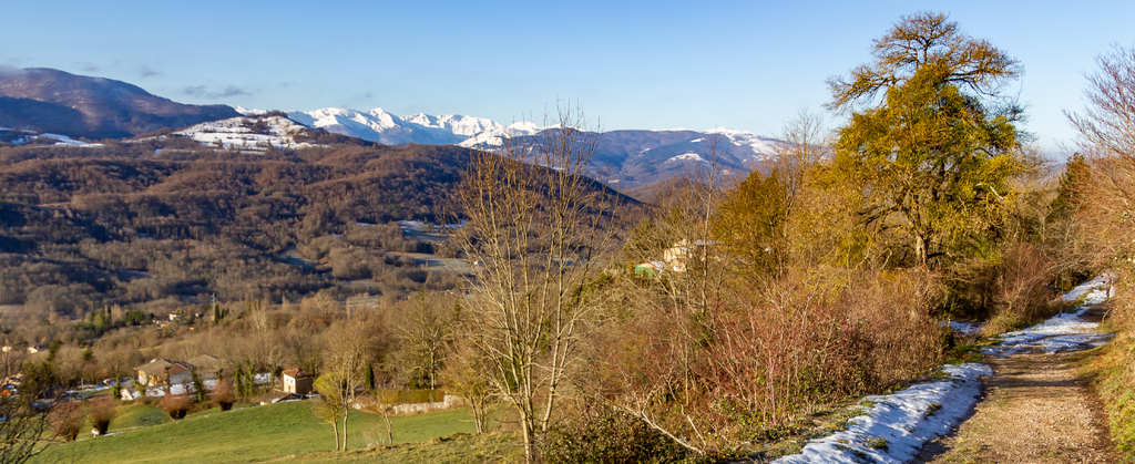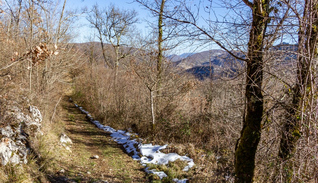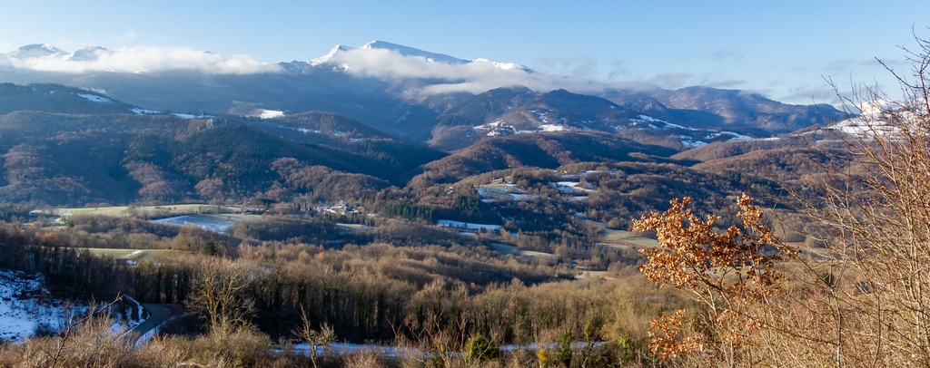 Longue remontée particulièrement pentue à la sortie de Roquefort puis en passant par Rasigot, Palette, Bac d'en haut, les Moulinières, au pied du Cap du Rouquet (916m) pour rejoindre le GR de Pays d'Olmes et arrivé au pied des ruines du château de Roquefixade avec un panorama splendide de Montségur jusqu'au pic de l'Aspre avec tous les massifs déjà cités.