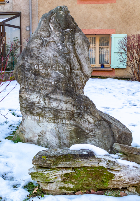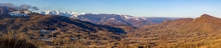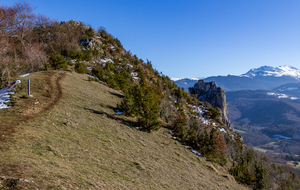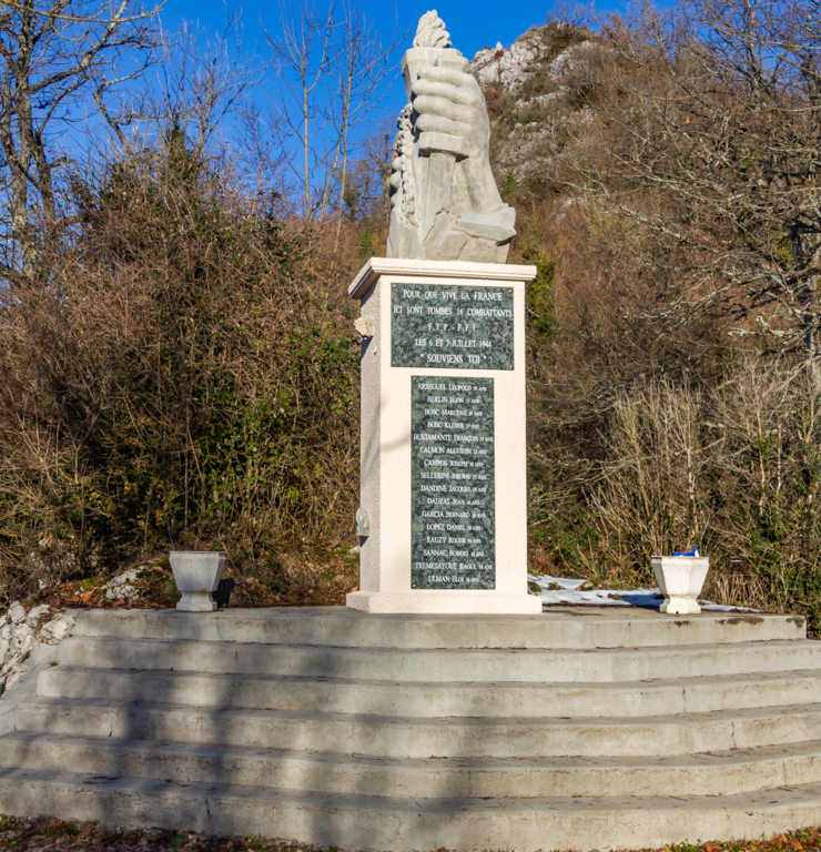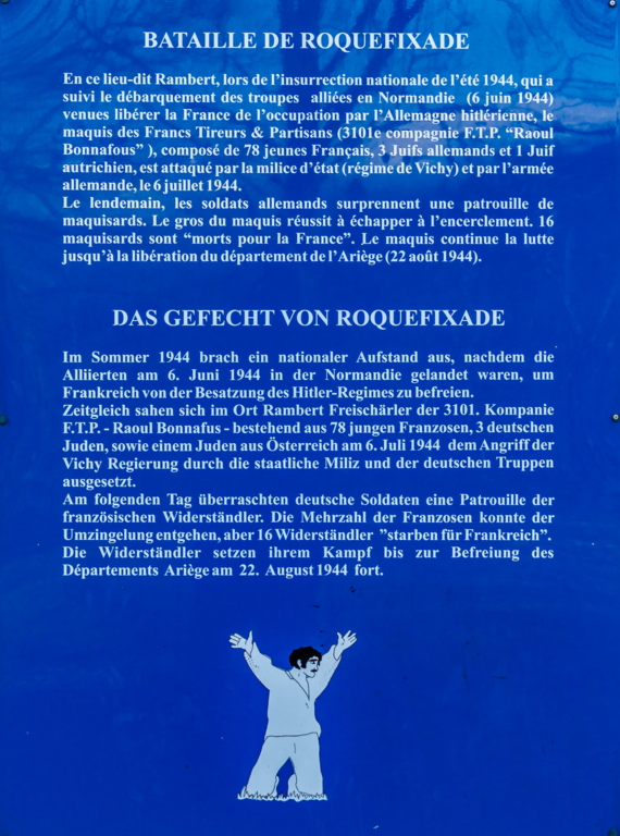 Légère montée pour atteindre la stèle des Maquisards de la Bataille de Roquefixade (juillet 1944) au pied du Roc de Louis. Très belles vues sur les Massifs de Tabe, de la Haute Chaîne Pyrénéenne, des Trois Seigneurs, de l'Arize et du Pech de Foix.