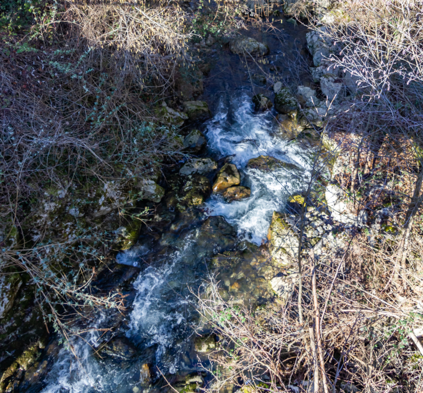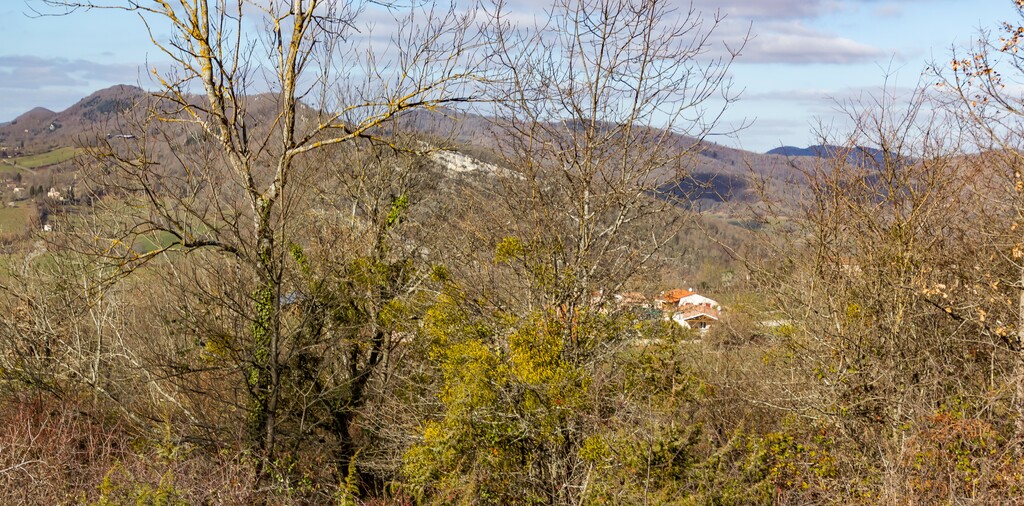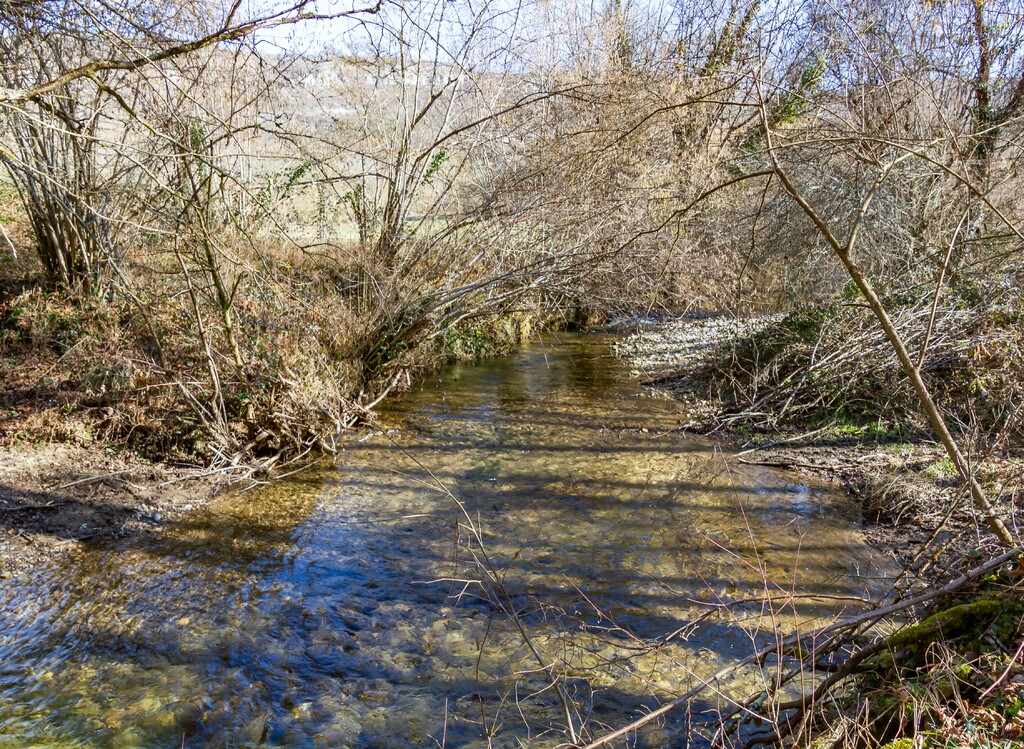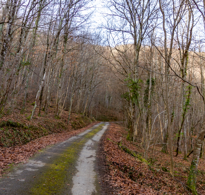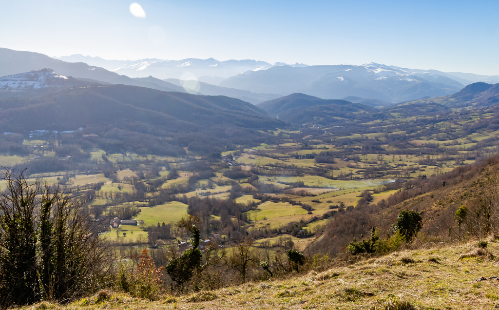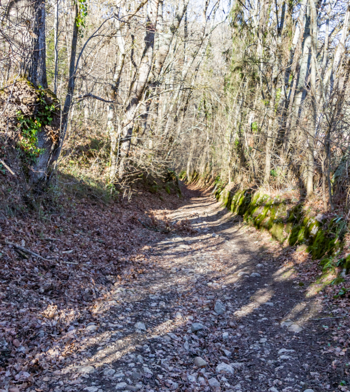 Longue descente à partir du Clot de Grésat, en passant par Le Grésat, Bac d'en bas, le Pont de la Pichole sur le Douctouyre jusqu'au hameau de Tanière. Cheminement de la Croix du Rouyre jusqu'au village de Roquefort les Cascades en passant par Nizard, Cazal, le village d'Ilhat, le Planel, Ponceau d'Anguille.