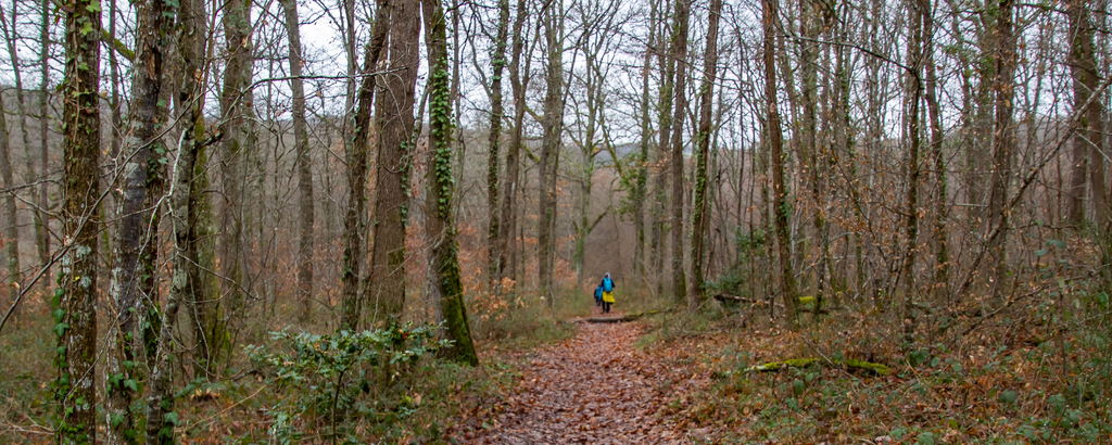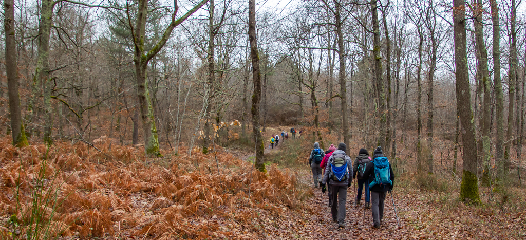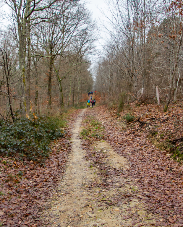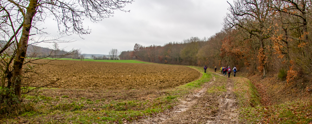 Montée et long cheminement dans le Bois du Burgaud avec pause repas rapide cause refroidissement à proximité de la D30. Retour au village en passant par La Péruscle, Delmas, Rodès et Vignadis.