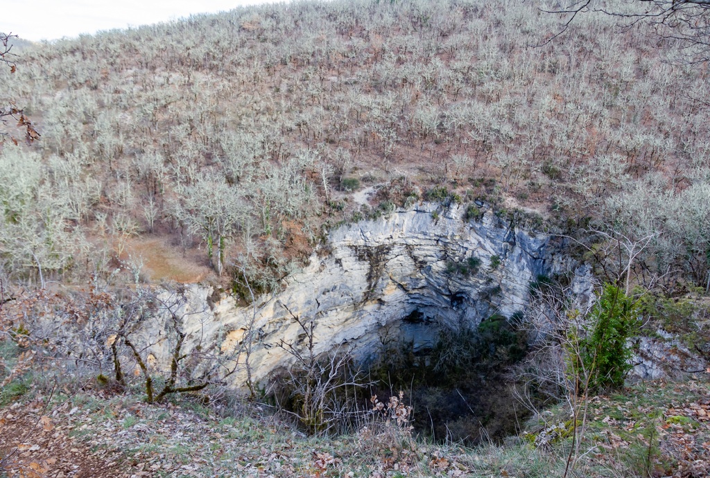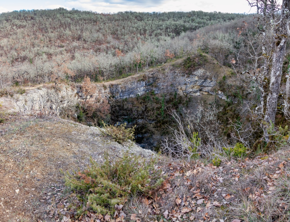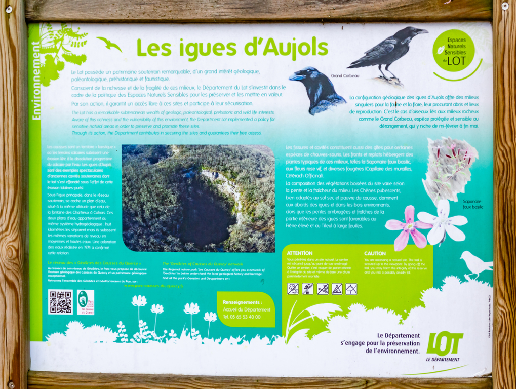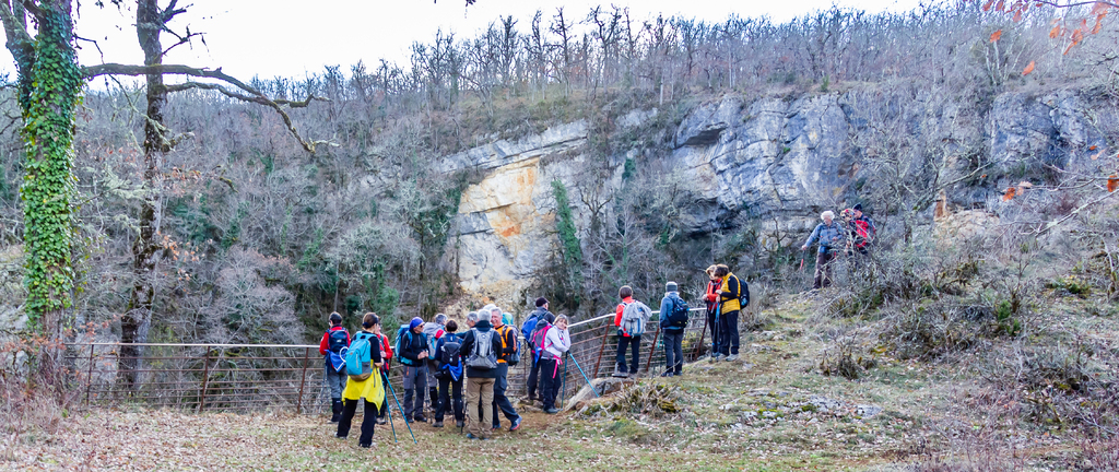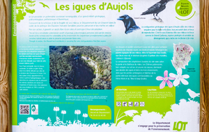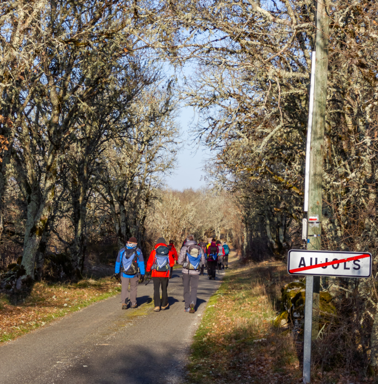 Remontée par Mas de Barte, la Valsette, les Valses la D911 jusqu'aux Igues (gouffres) d'Aujols. Montée au bord des Igues en contournant le Pech de la Barre. Poursuite jusqu'à Aujols en passant par les Bayssades, la Croze, Cloup du Prieur, Prat del Gras, Camp Grand, Brunard, Miquel, les Thézauriès bas.