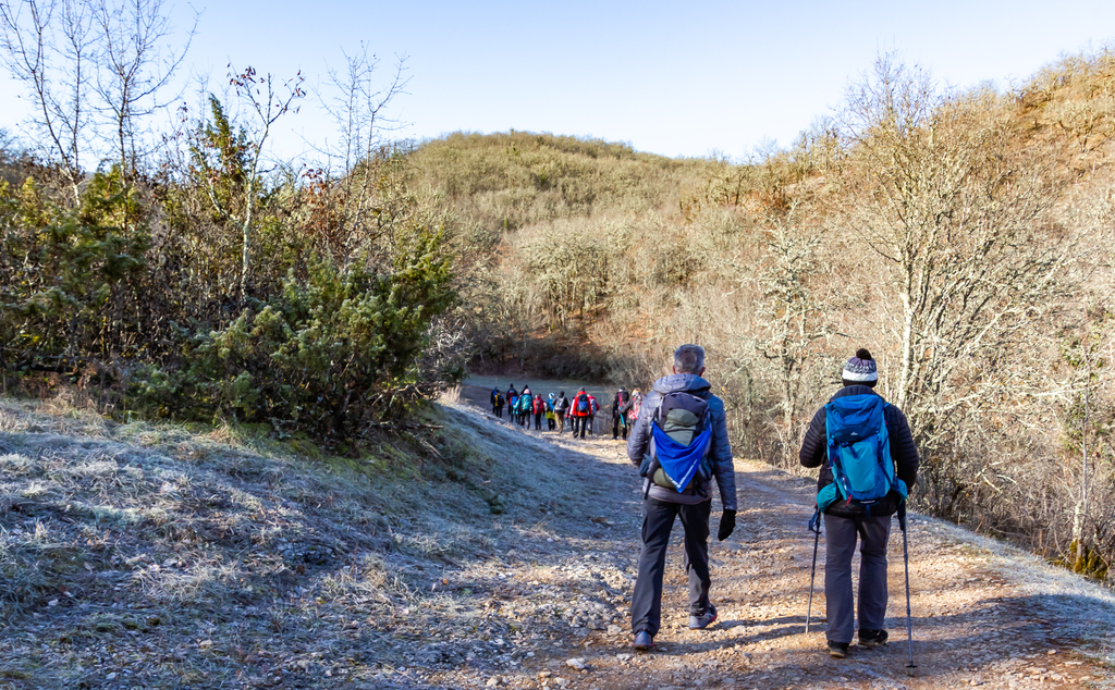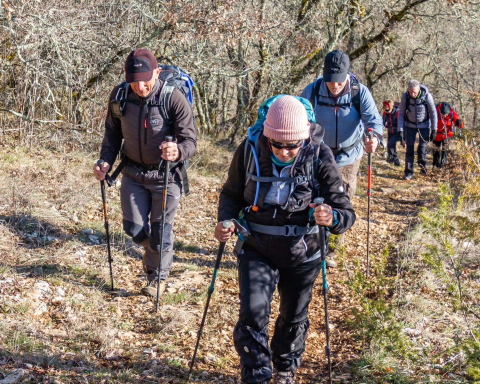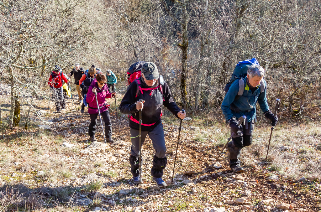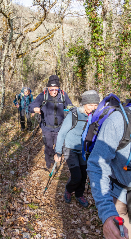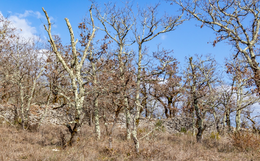 Remontée par Mas de Barte, la Valsette, les Valses la D911 jusqu'aux Igues (gouffres) d'Aujols. Montée au bord des Igues en contournant le Pech de la Barre. Poursuite jusqu'à Aujols en passant par les Bayssades, la Croze, Cloup du Prieur, Prat del Gras, Camp Grand, Brunard, Miquel, les Thézauriès bas.