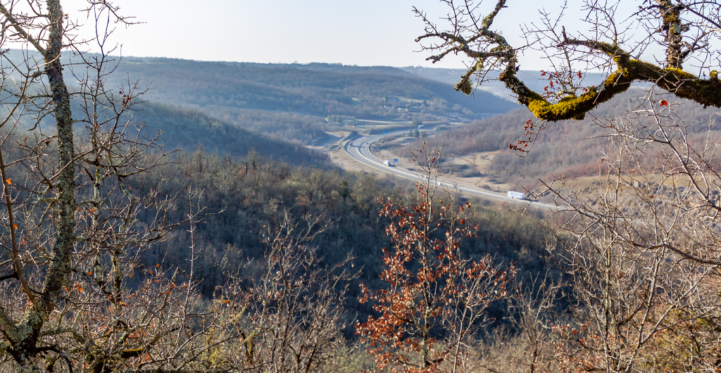 Départ parking lac d'Aujols près des lavoirs papillons, Mas d'Abriol, Les Rengades, Poux Névé, direction Bernard des Aux, Bournet, la Coste par le GR 36A. Passage sous l'autoroute A20 pour rejoindre le Laquet.