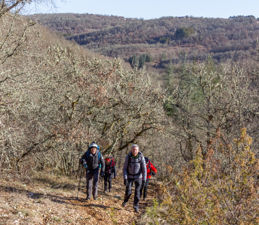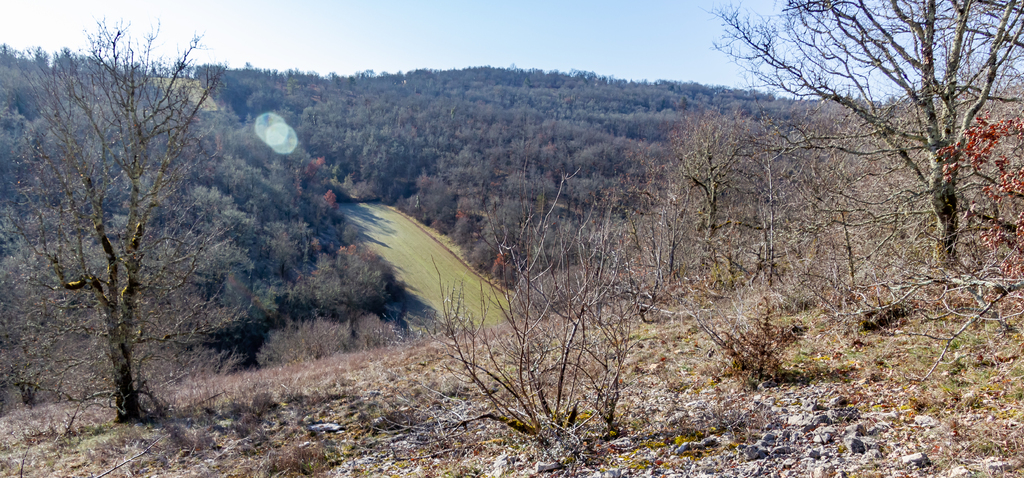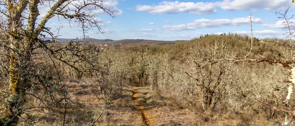 Montée sur le Pech Aladret, poursuite par le chemin du Pech Delmet, descente par Combel de Roundes sur le GR36 entre le Pech de Caytibel et le Pech Long jusqu'à Cavaniès et la rive du Lot.