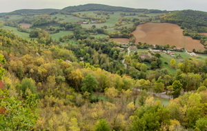 Poursuite de la descente par la route forestière des Beudes puis une dernière et faible montée à la Trapasse pour descendre ensuite jusqu'au beau point de vue sur le village de Larroque et la vallée de la Vère.