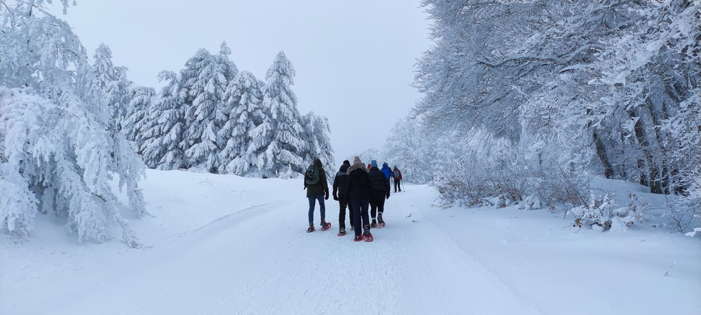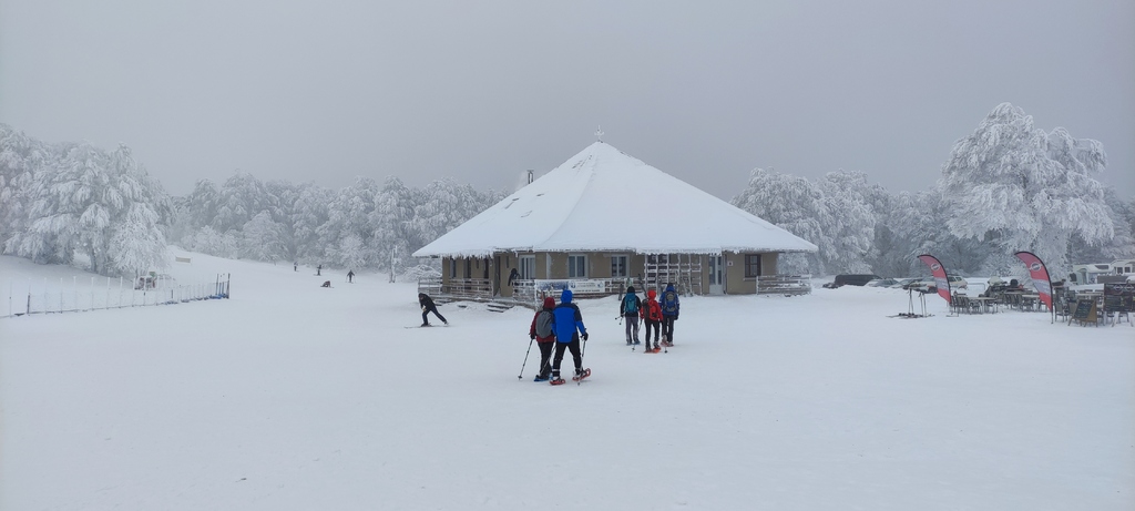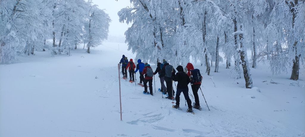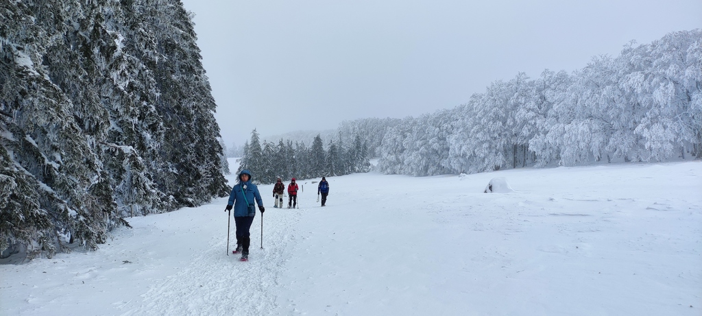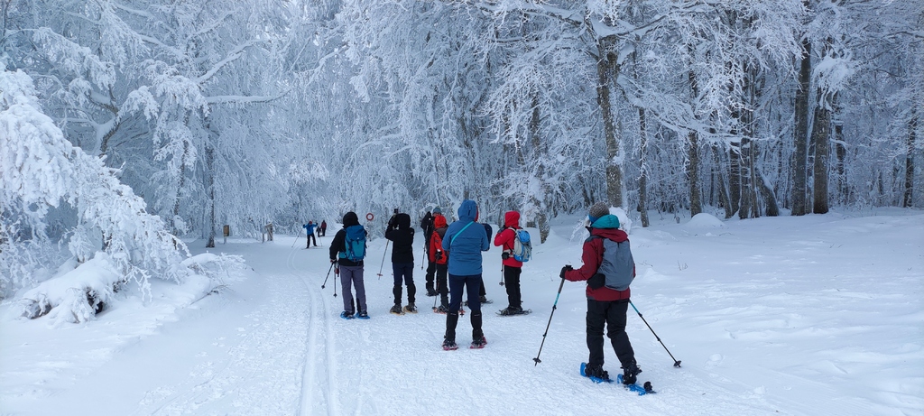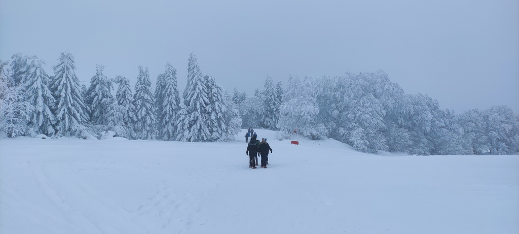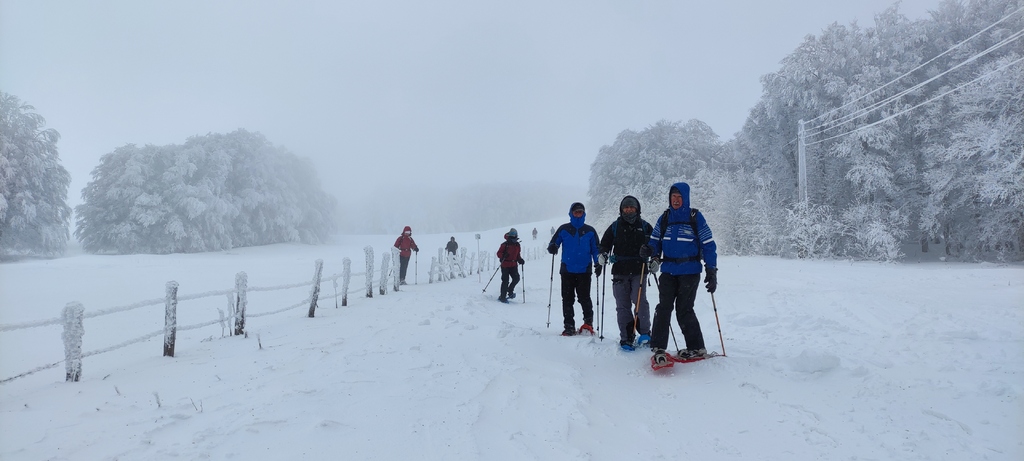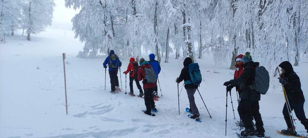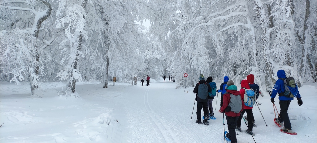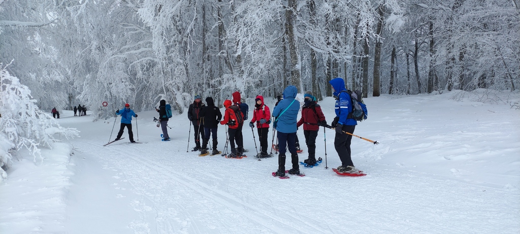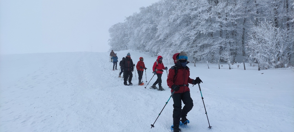 Suite à la fermeture du col pour atteindre la station de St-Urcize, la sortie raquettes du samedi s'est effectuée à la station de Laguiole.