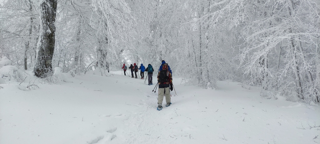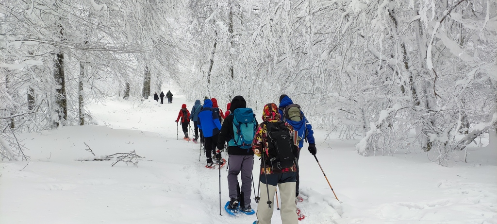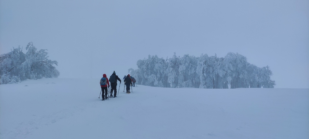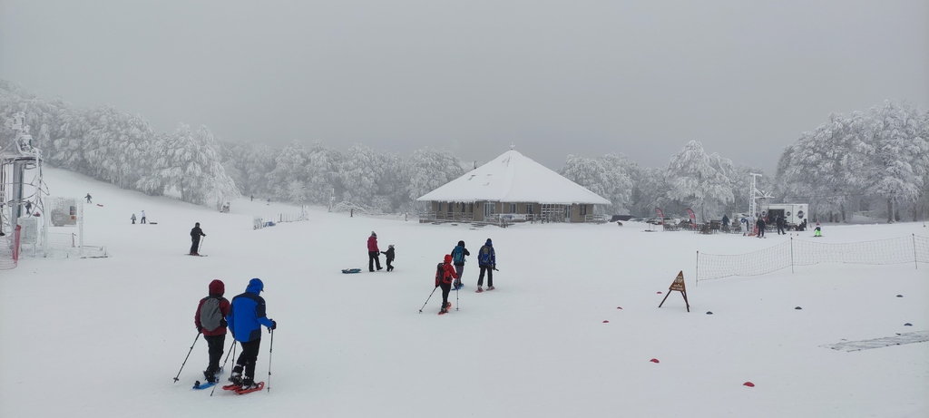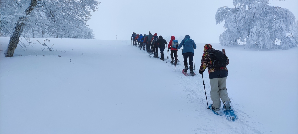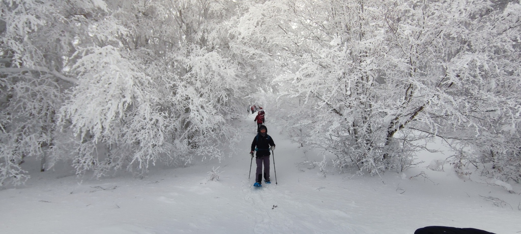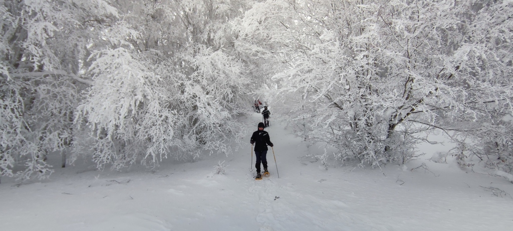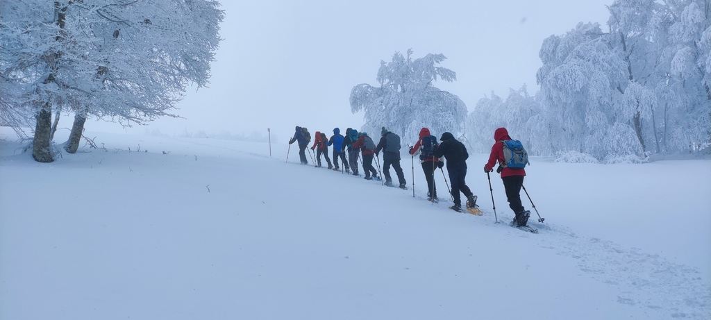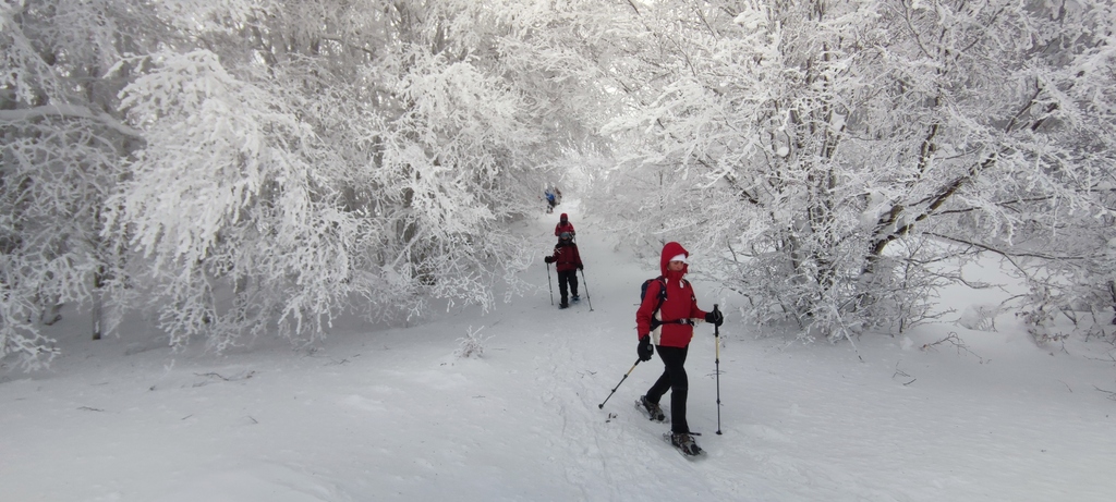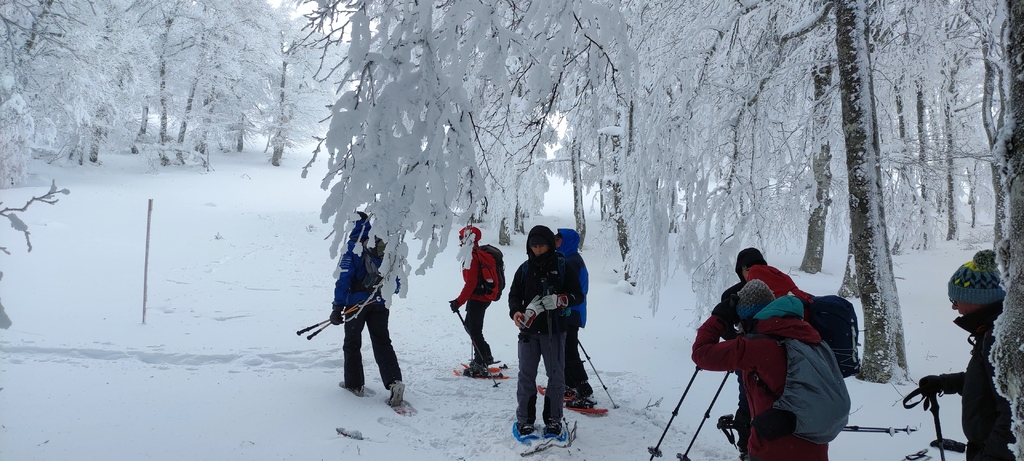 Suite à la fermeture du col pour atteindre la station de St-Urcize, la sortie raquettes du samedi s'est effectuée à la station de Laguiole.