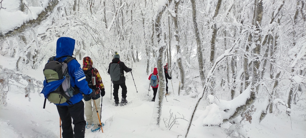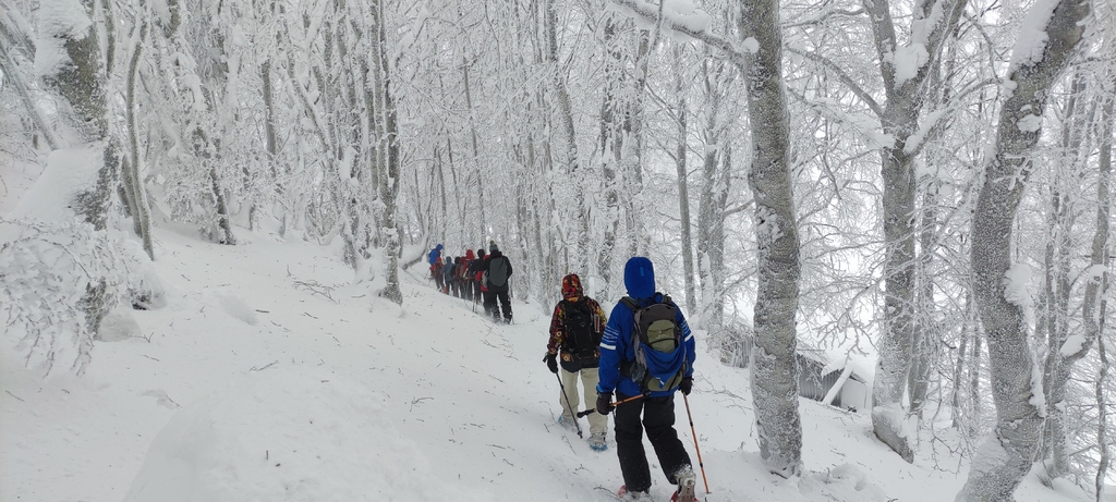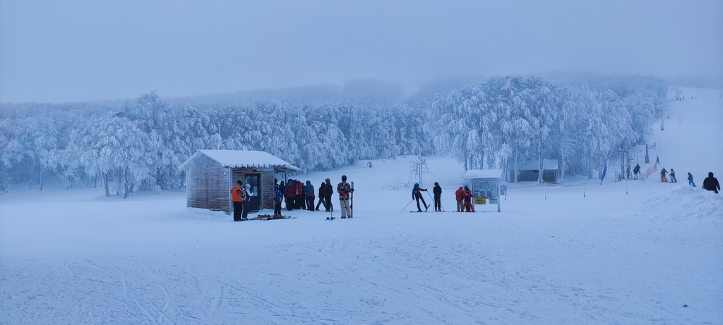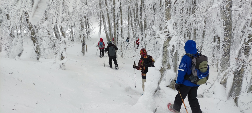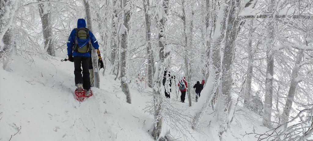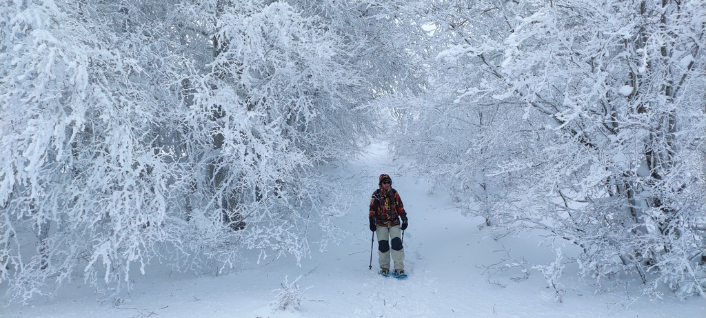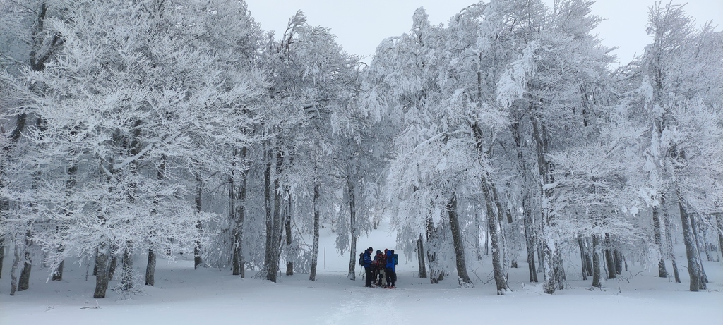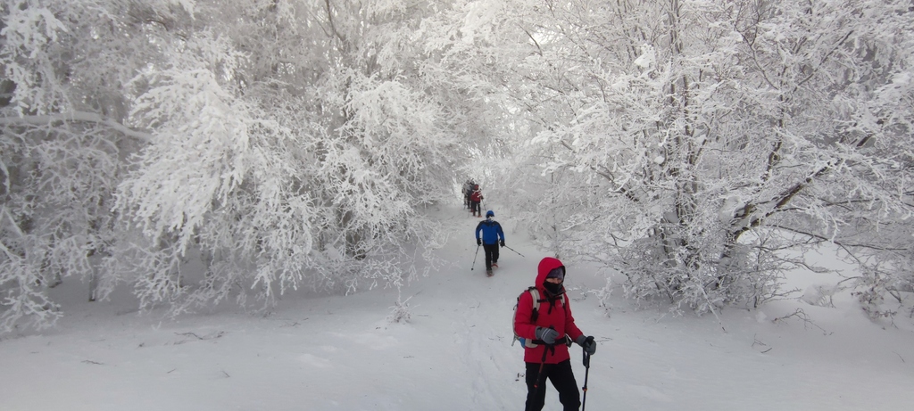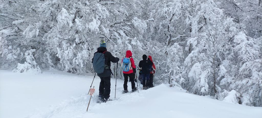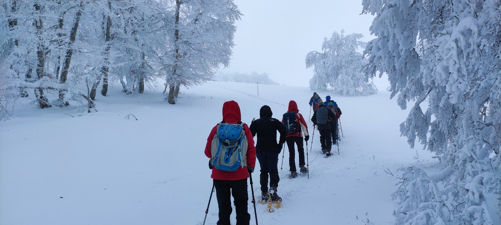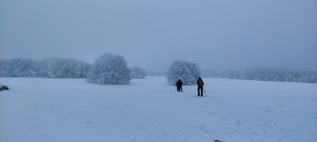 Suite à la fermeture du col pour atteindre la station de St-Urcize, la sortie raquettes du samedi s'est effectuée à la station de Laguiole.
