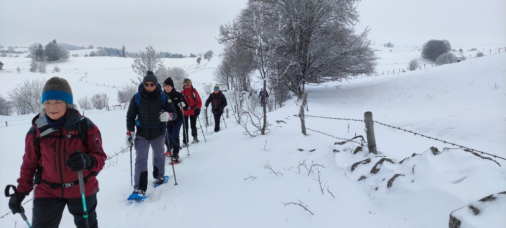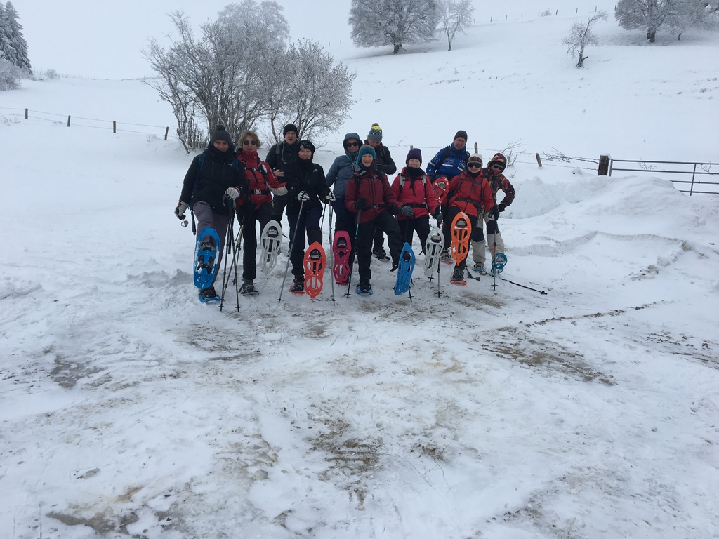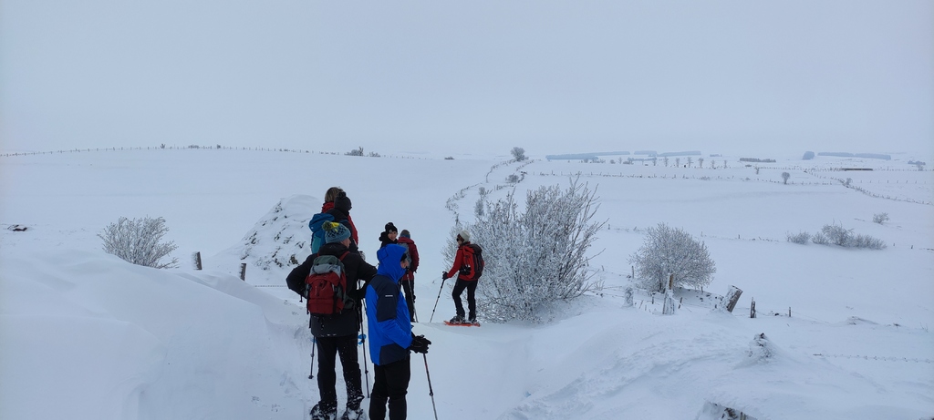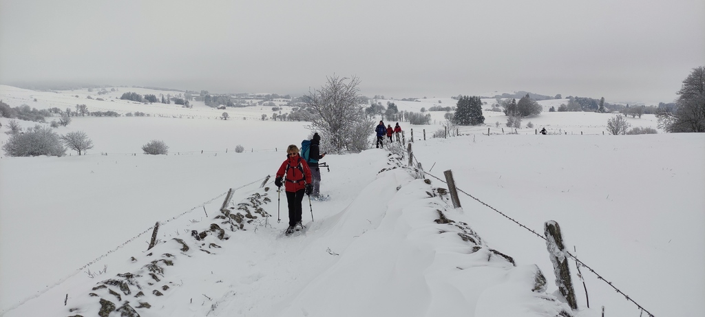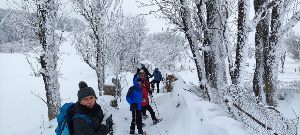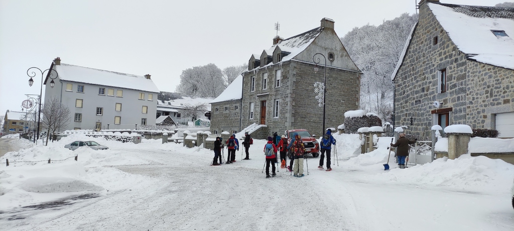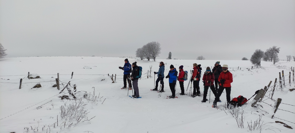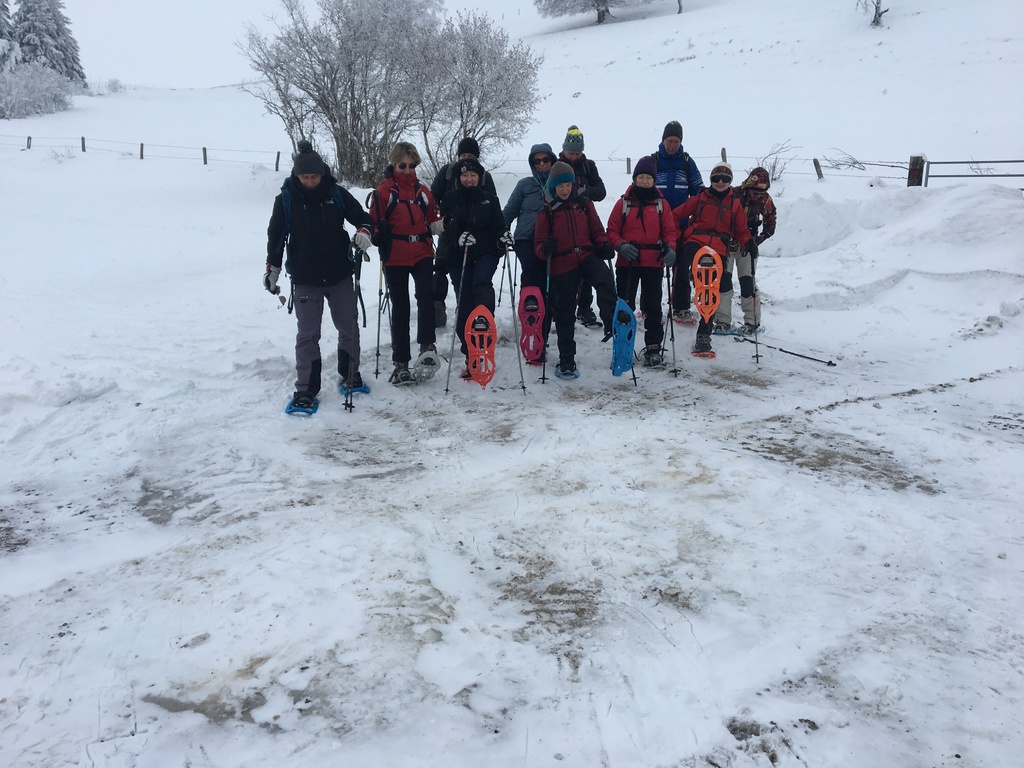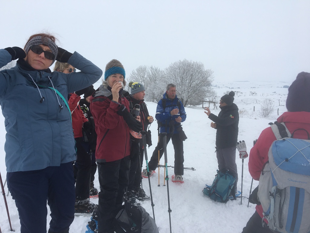 Vu l'état des routes pour arriver à Nasbinals (Plusieurs routes fermées pour cause de congères de neige trop importantes), la sortie raquette du dimanche a eu lieu à Nasbinal même.