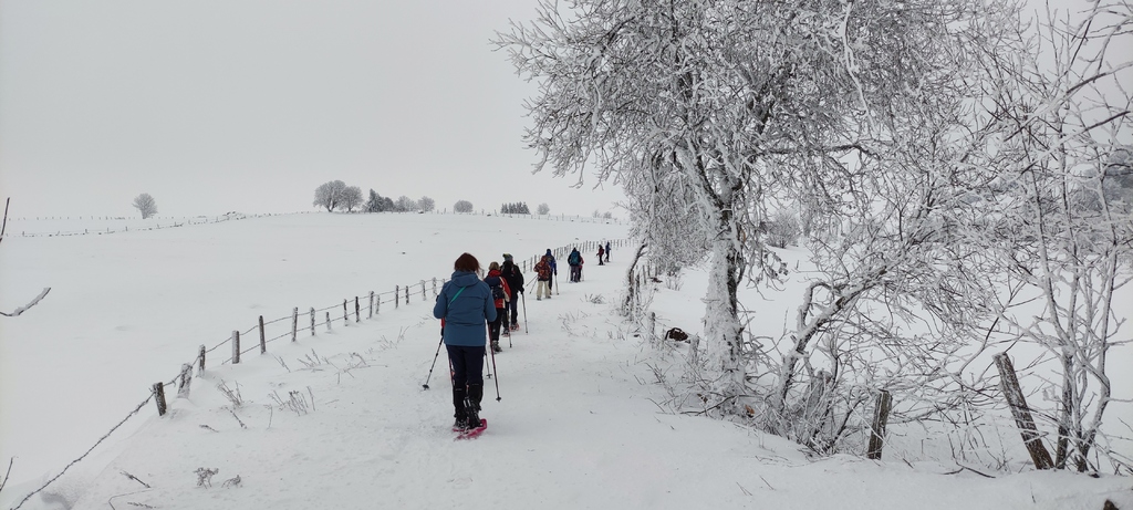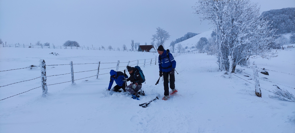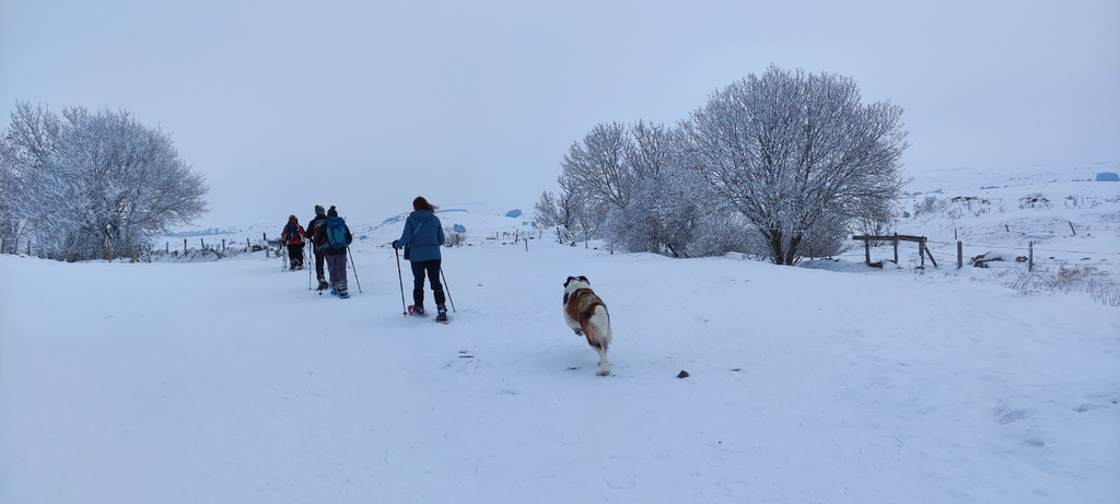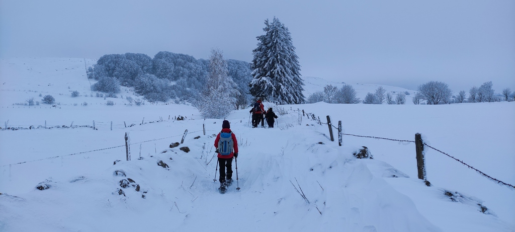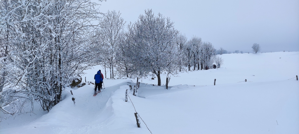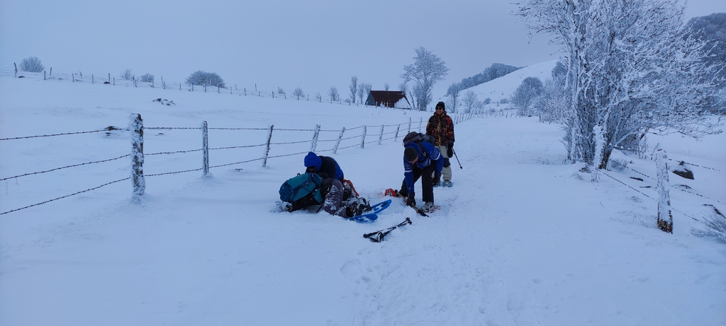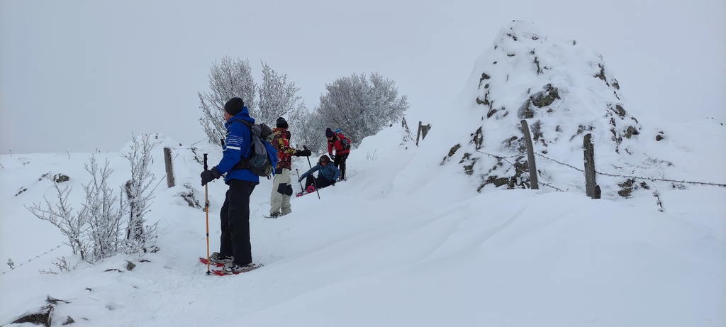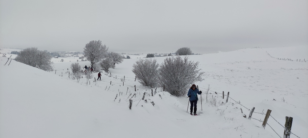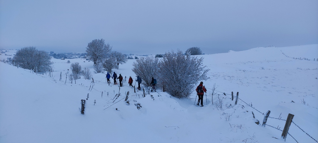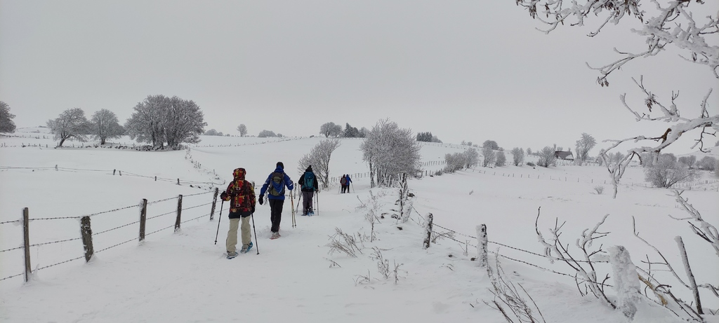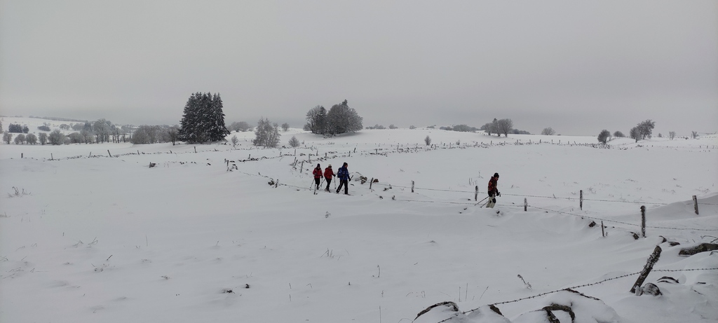 Vu l'état des routes pour arriver à Nasbinals (Plusieurs routes fermées pour cause de congères de neige trop importantes), la sortie raquette du dimanche a eu lieu à Nasbinal même.