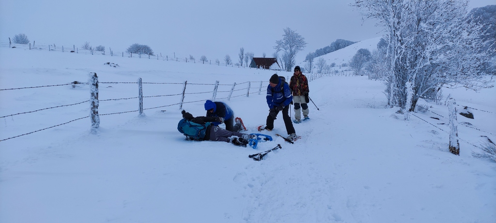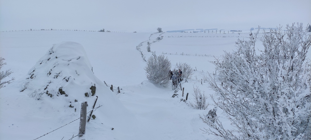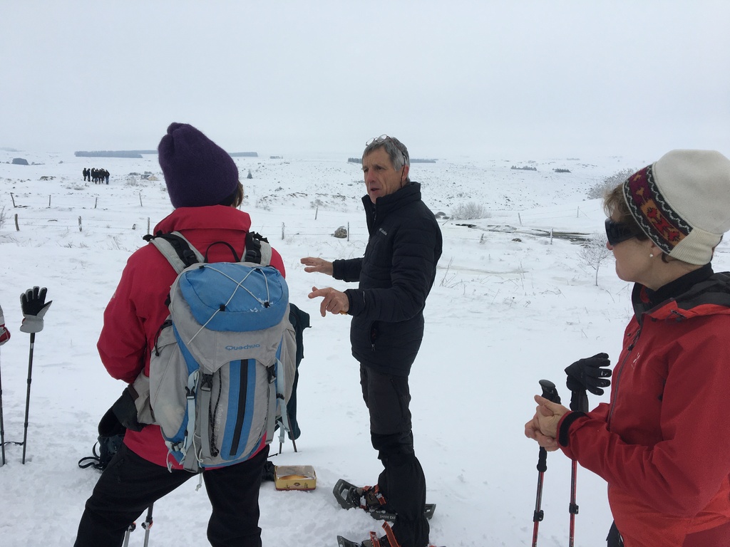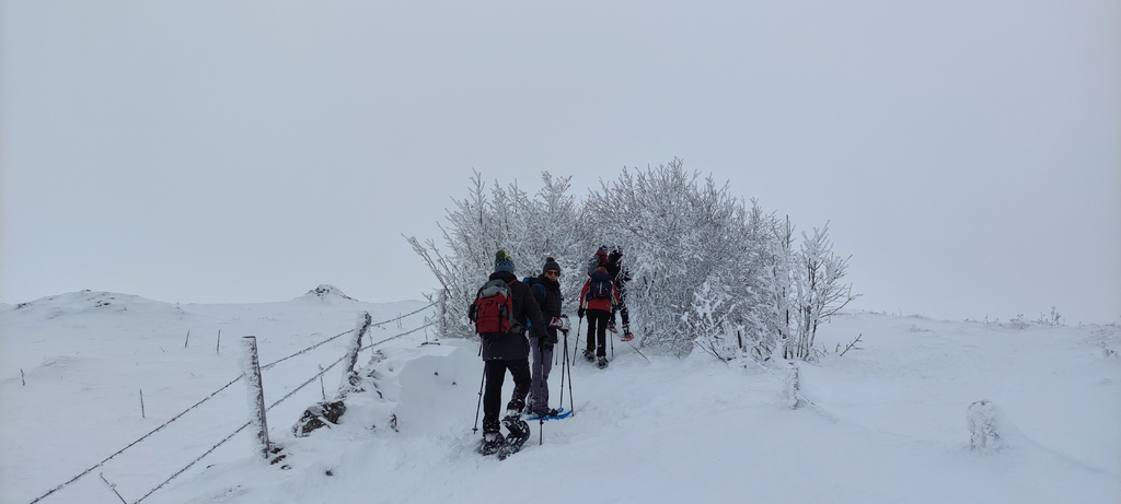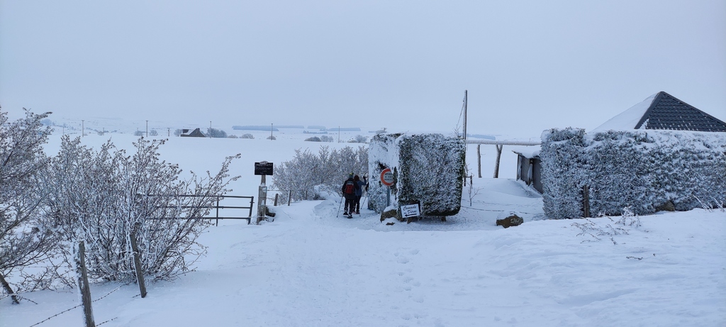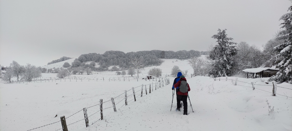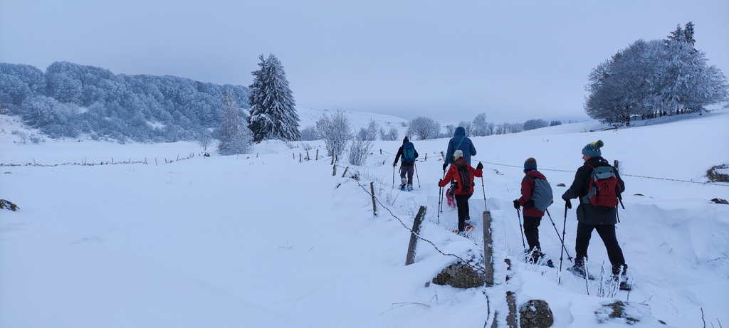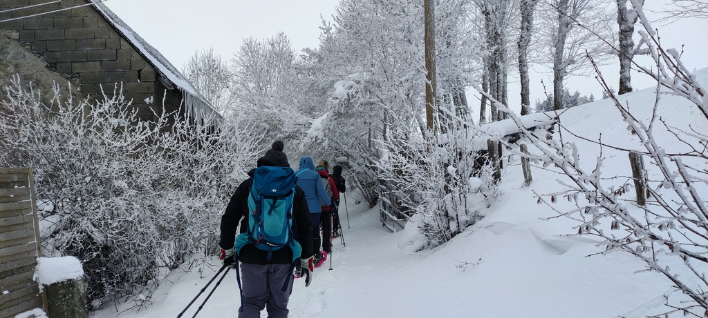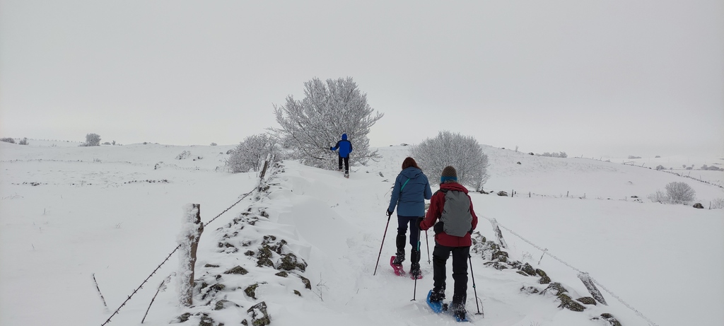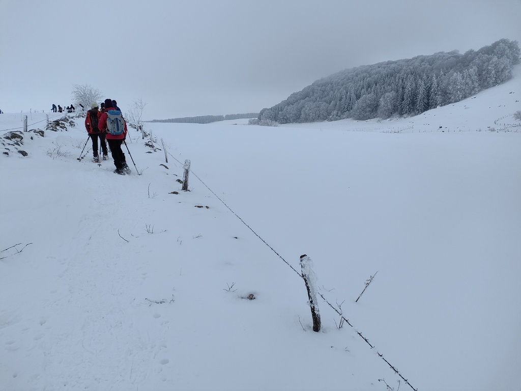 Vu l'état des routes pour arriver à Nasbinals (Plusieurs routes fermées pour cause de congères de neige trop importantes), la sortie raquette du dimanche a eu lieu à Nasbinal même.