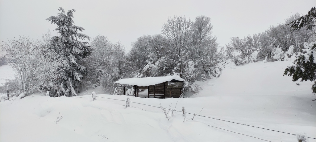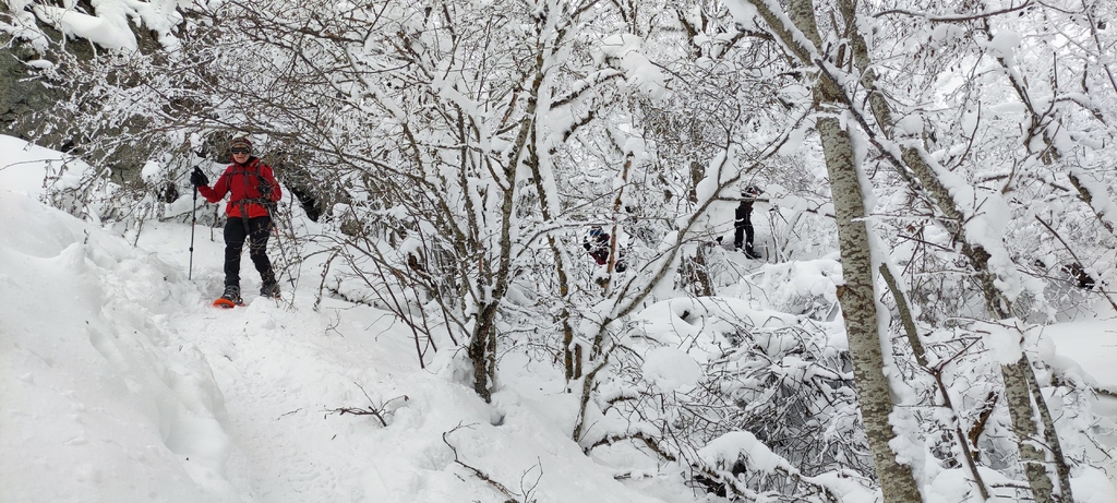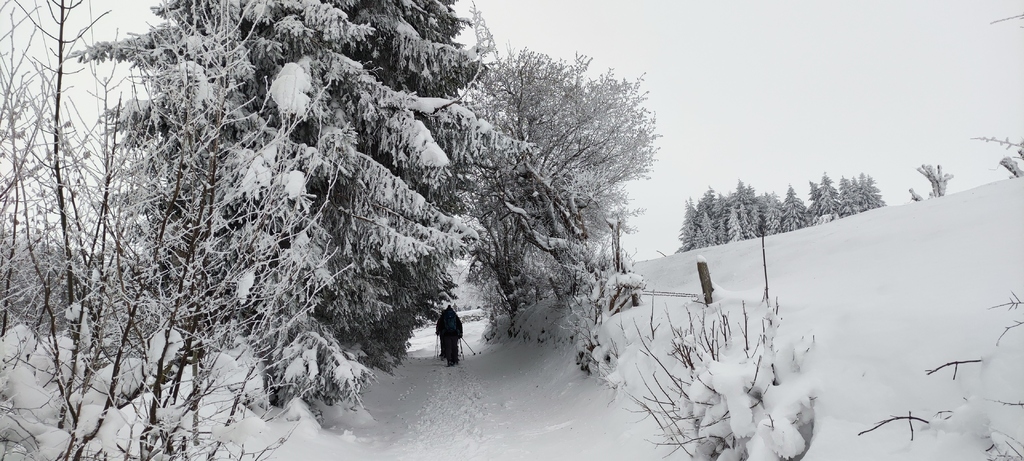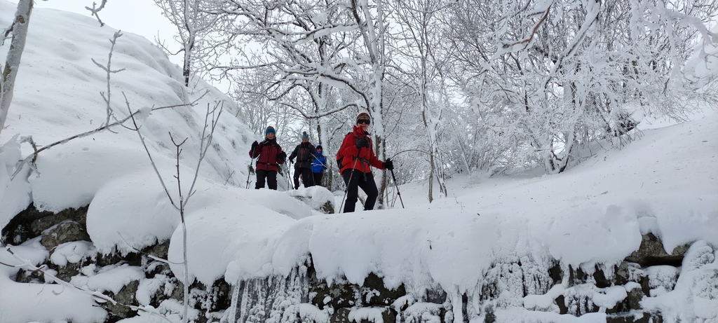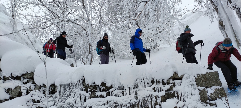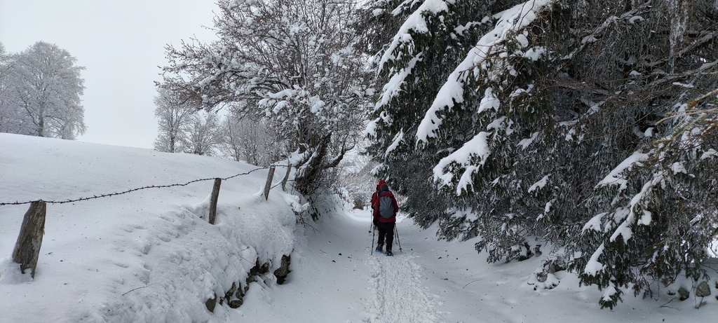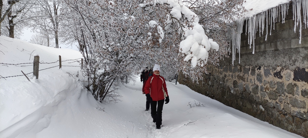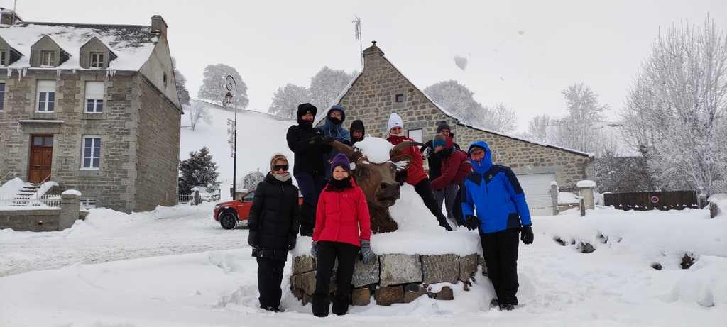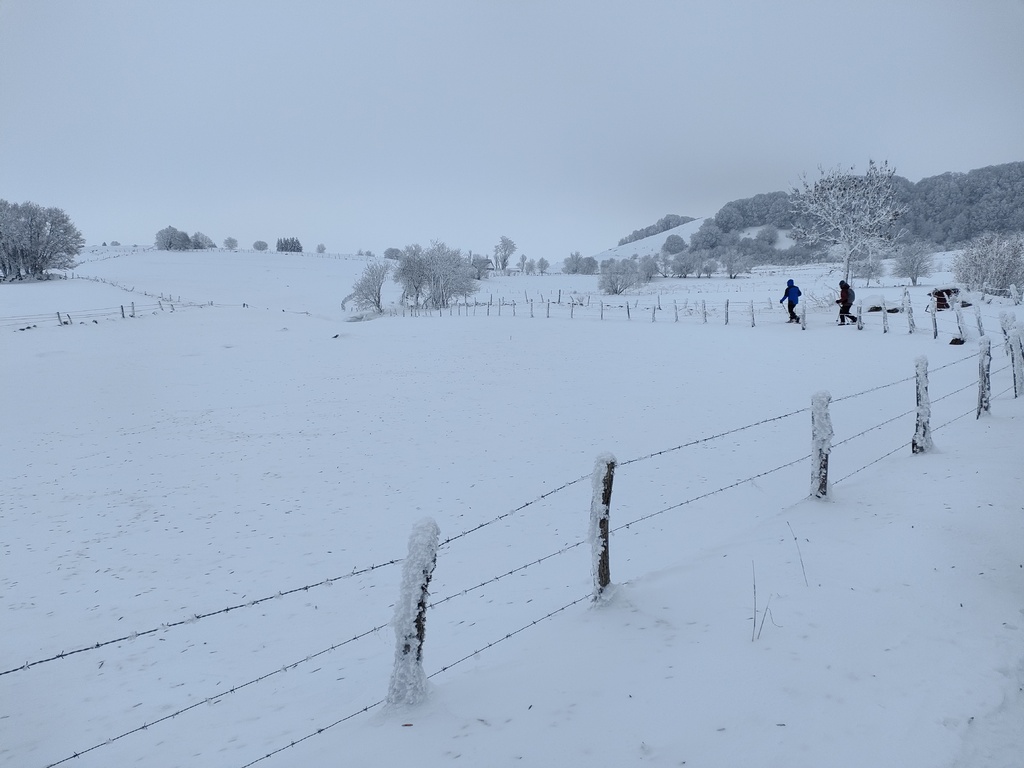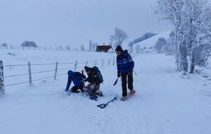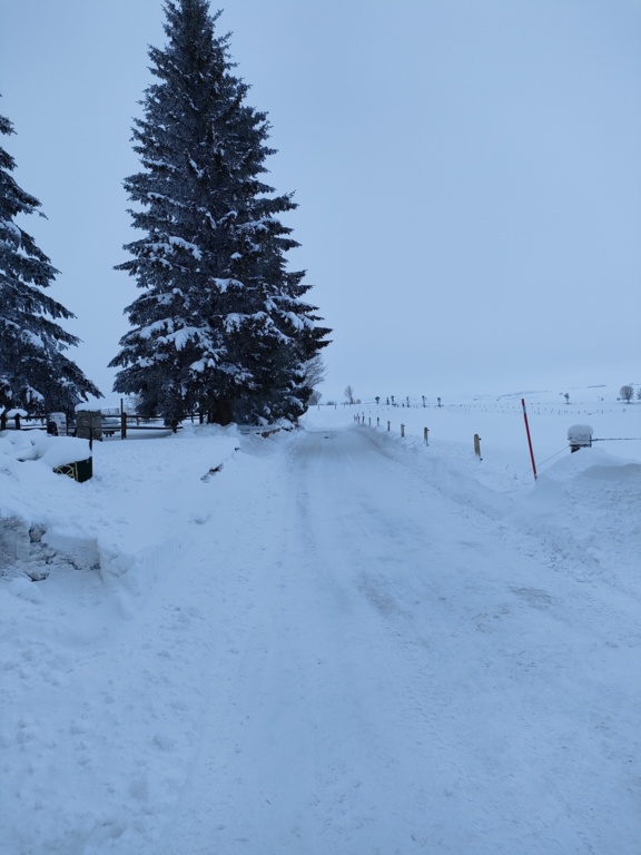 Vu l'état des routes pour arriver à Nasbinals (Plusieurs routes fermées pour cause de congères de neige trop importantes), la sortie raquette du dimanche a eu lieu à Nasbinal même.