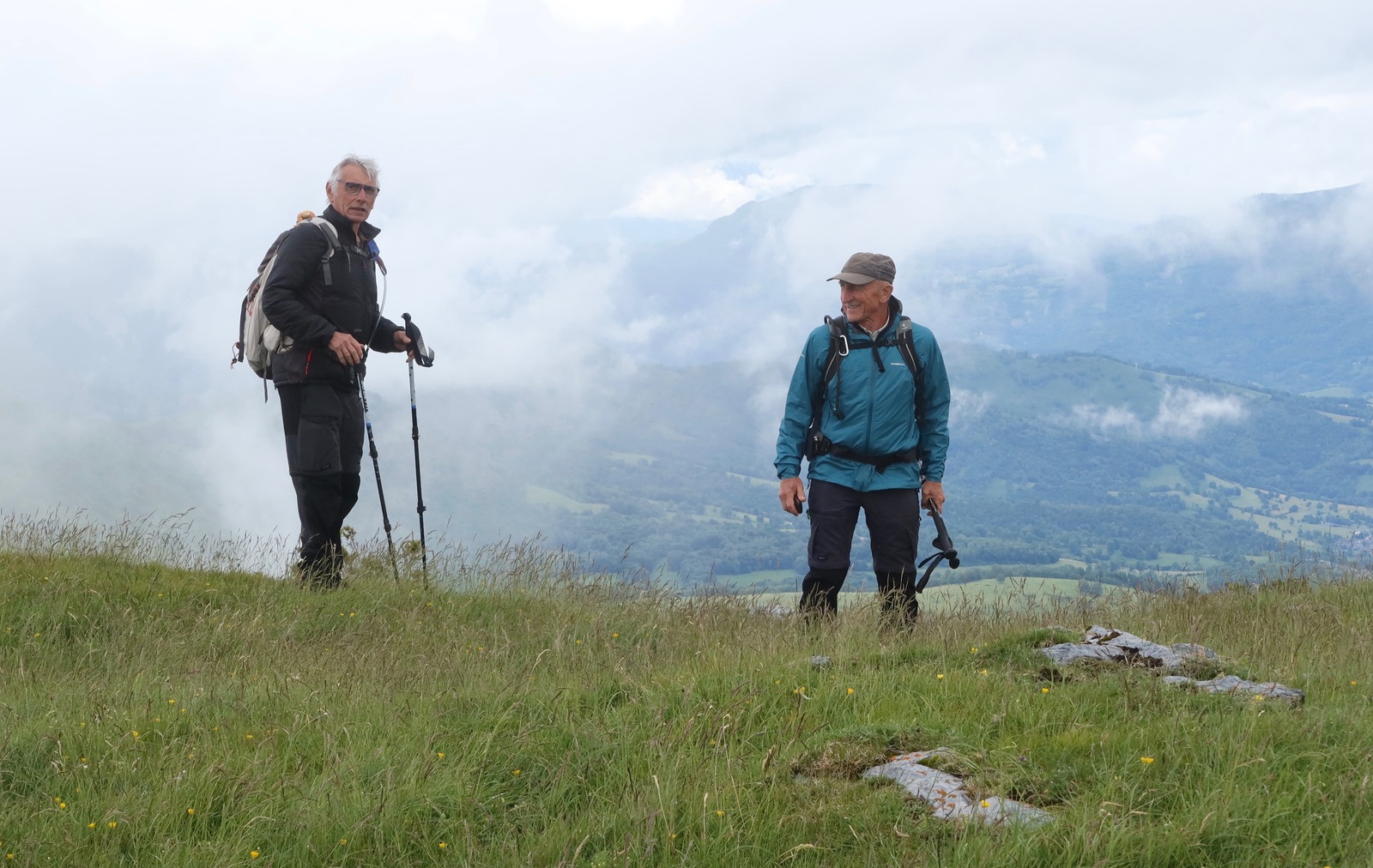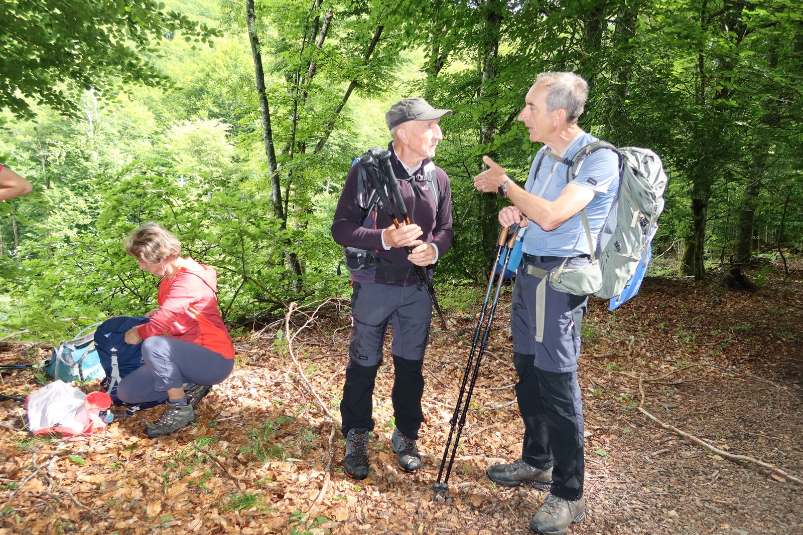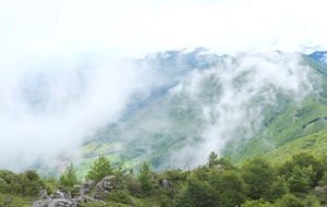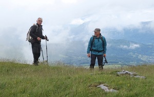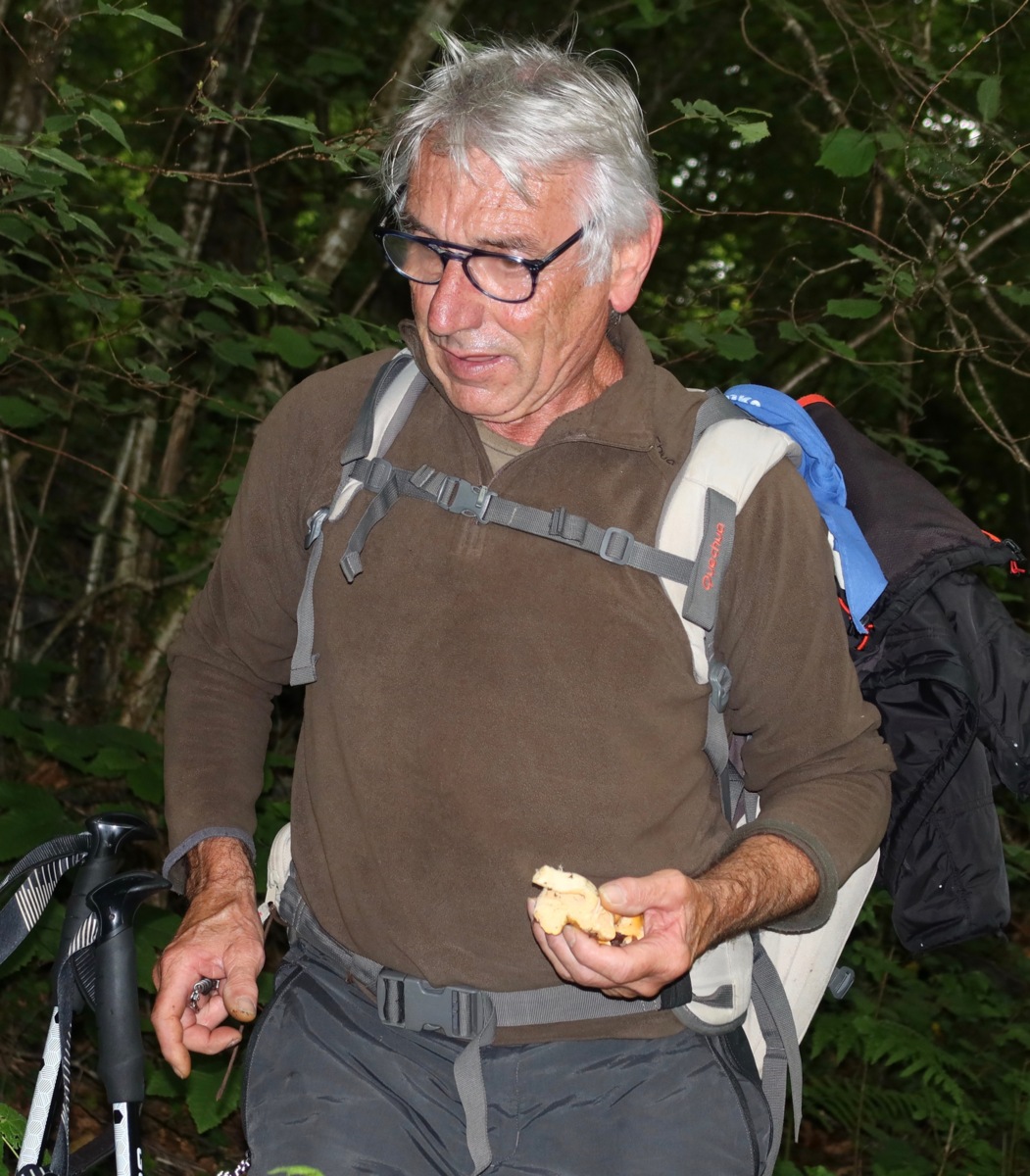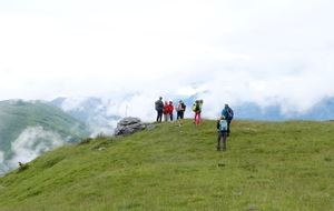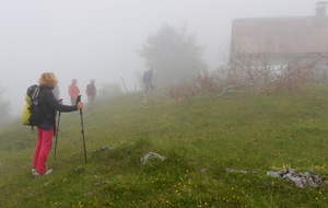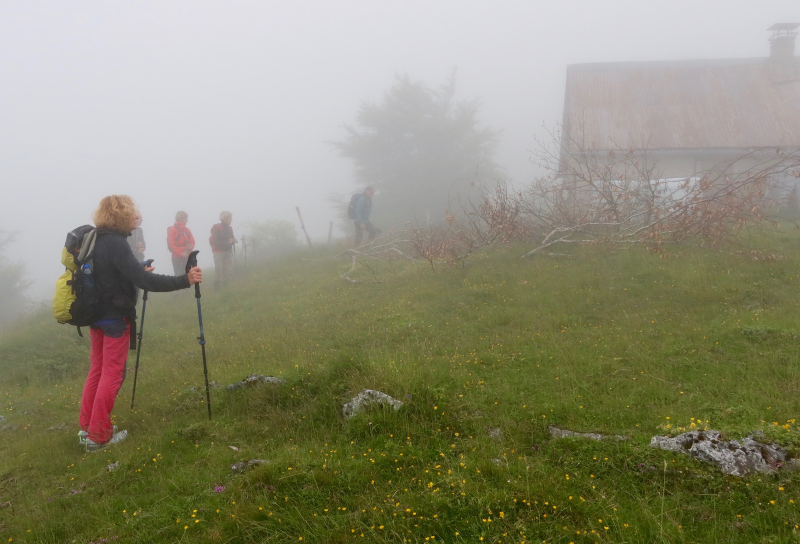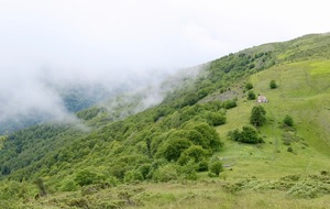 Le Pic de la Calabasse (2200m) étant probablement ennuagé, Christian nous a guidé vers le sommet de Cornudère, plus bas en altitude... Mais l'ascencion fut une grimpète ariégoise quand même, agrémentée d'une pause de cueillette girolles... La crête de Cornudère étant toujours dans la brume, la cabane fut la bienvenue pour la pause déjeuner. Mais tout juste assez grande pour notre petit groupe (9). En montant ensuite au sommet, quelques coins de ciel bleu apparurent, la descente par les hameaux de Galey, Augirein et Orchain fut sympathique, de même que la pause raffraichissante à Aspet... A une prochaine.