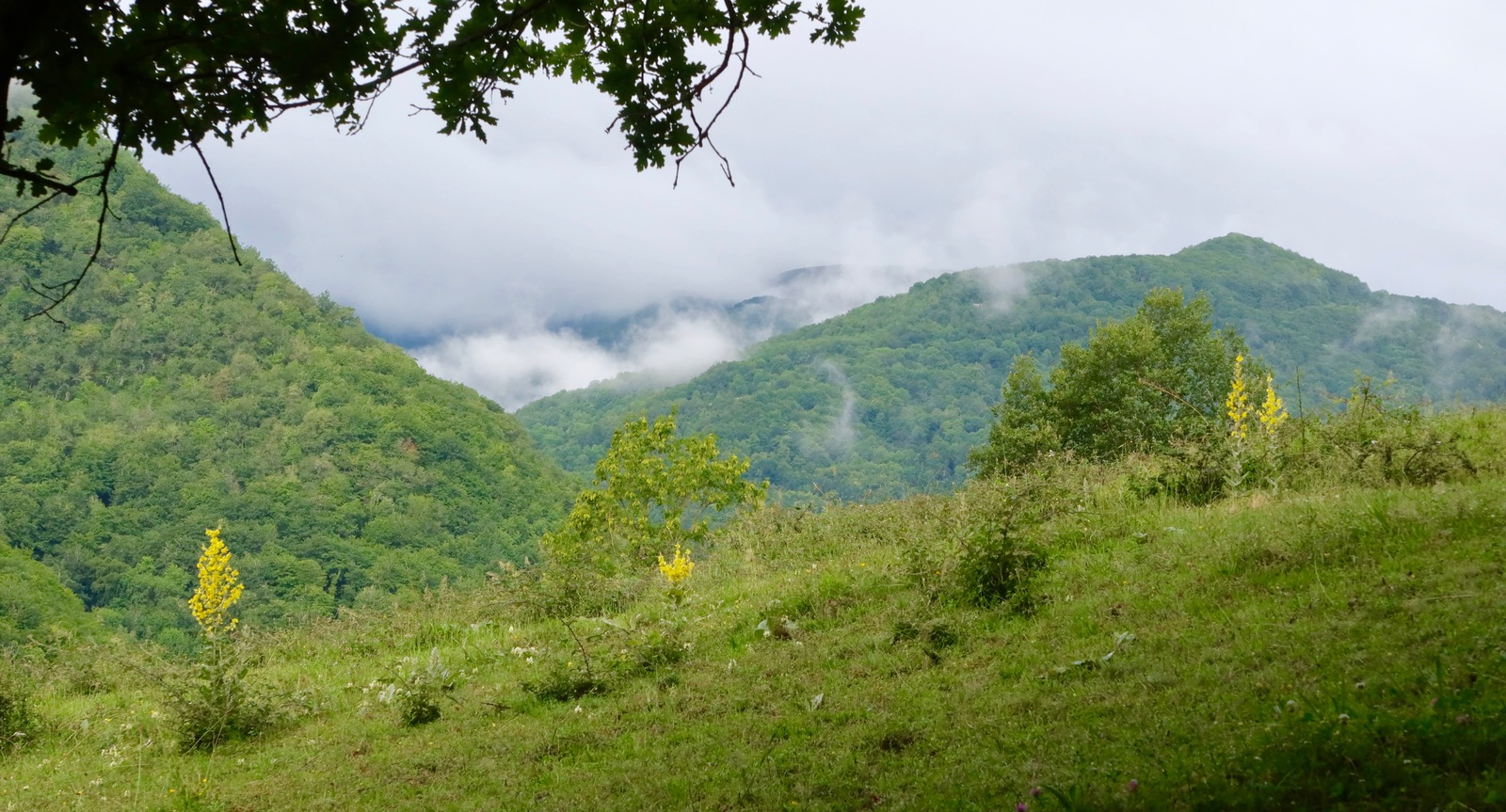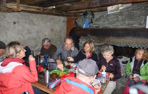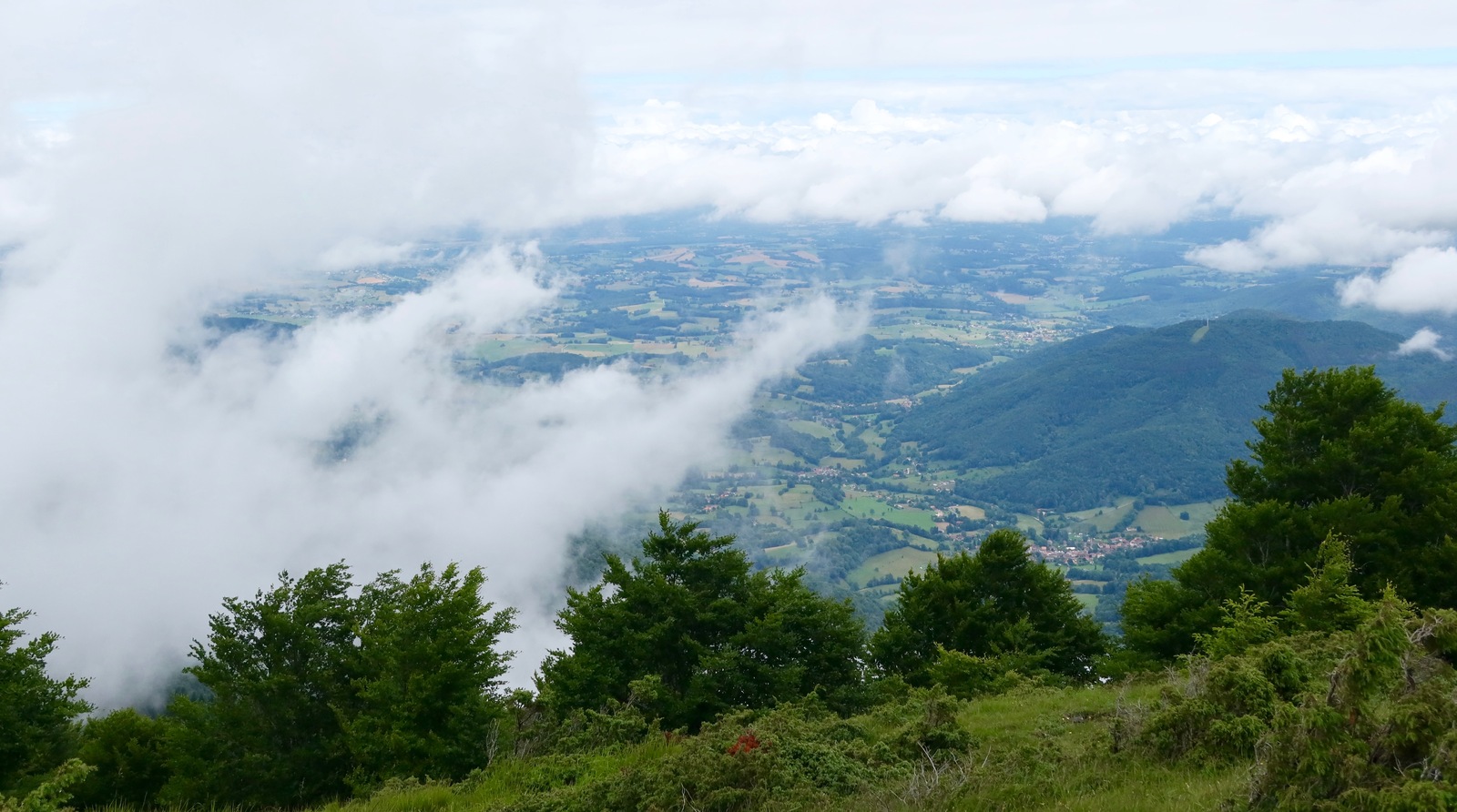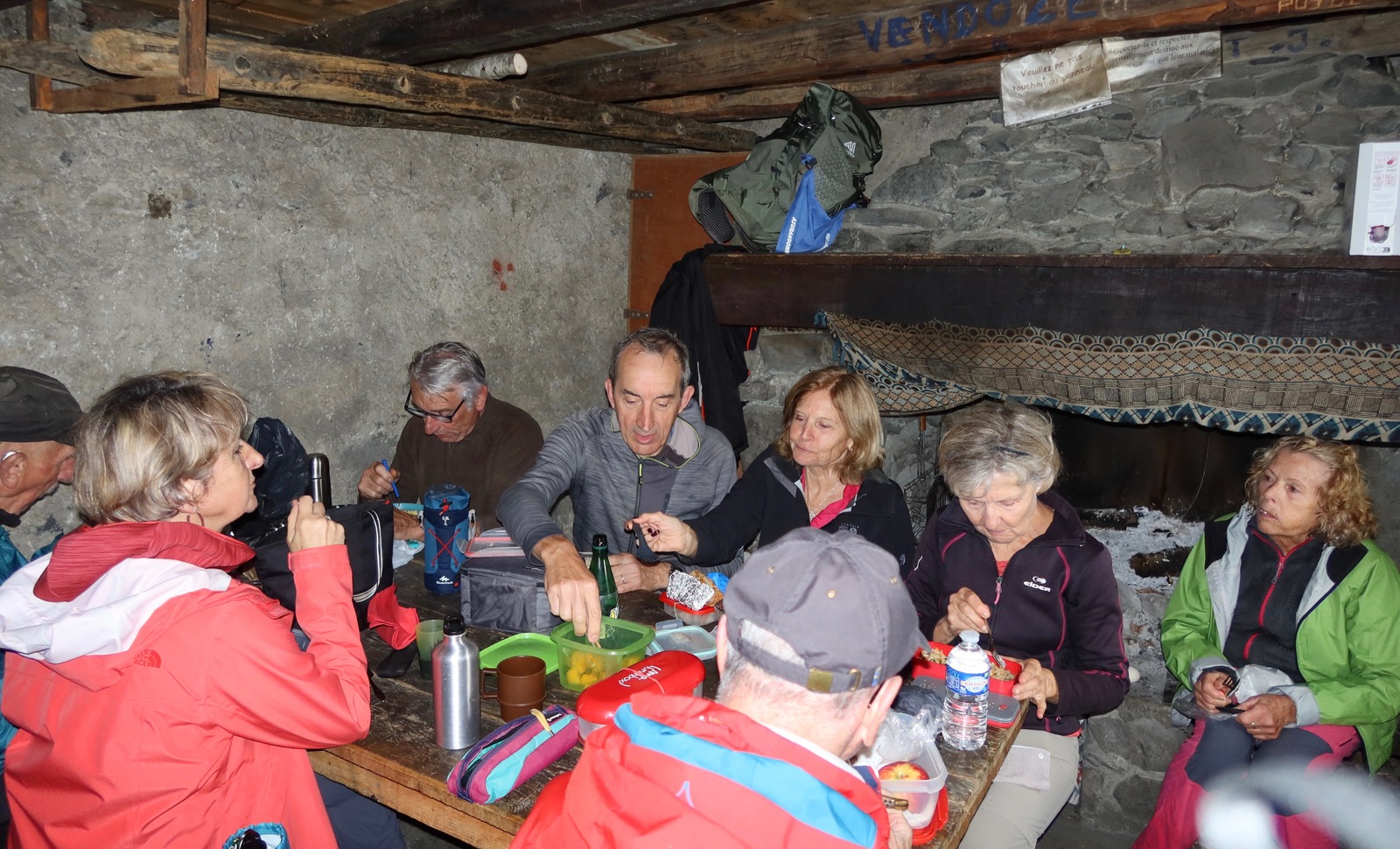 Le Pic de la Calabasse (2200m) étant probablement ennuagé, Christian nous a guidé vers le sommet de Cornudère, plus bas en altitude... Mais l'ascencion fut une grimpète ariégoise quand même, agrémentée d'une pause de cueillette girolles... La crête de Cornudère étant toujours dans la brume, la cabane fut la bienvenue pour la pause déjeuner. Mais tout juste assez grande pour notre petit groupe (9). En montant ensuite au sommet, quelques coins de ciel bleu apparurent, la descente par les hameaux de Galey, Augirein et Orchain fut sympathique, de même que la pause raffraichissante à Aspet... A une prochaine.