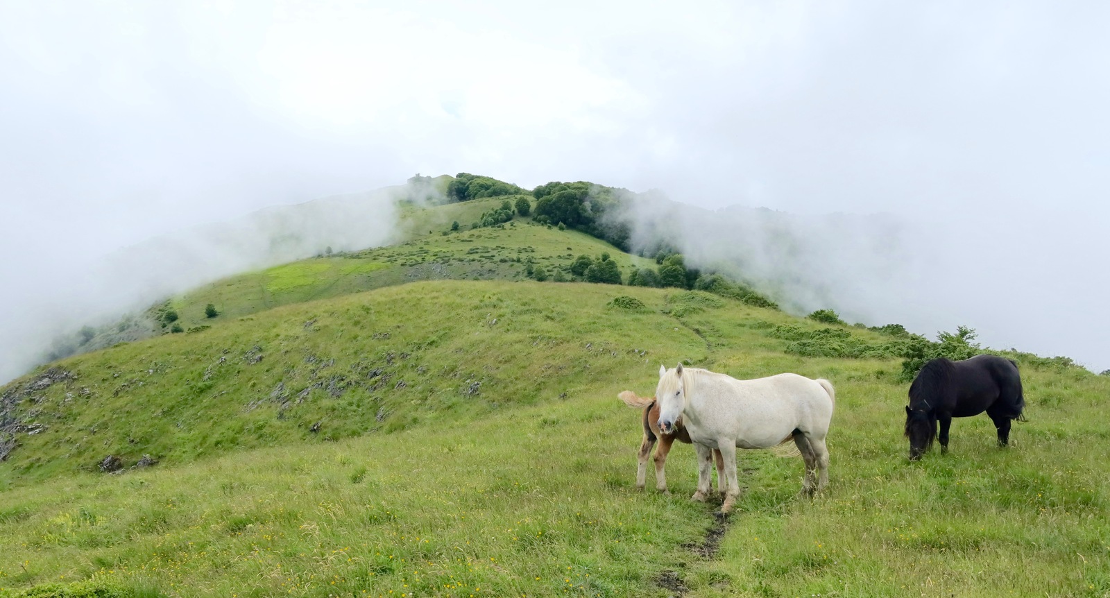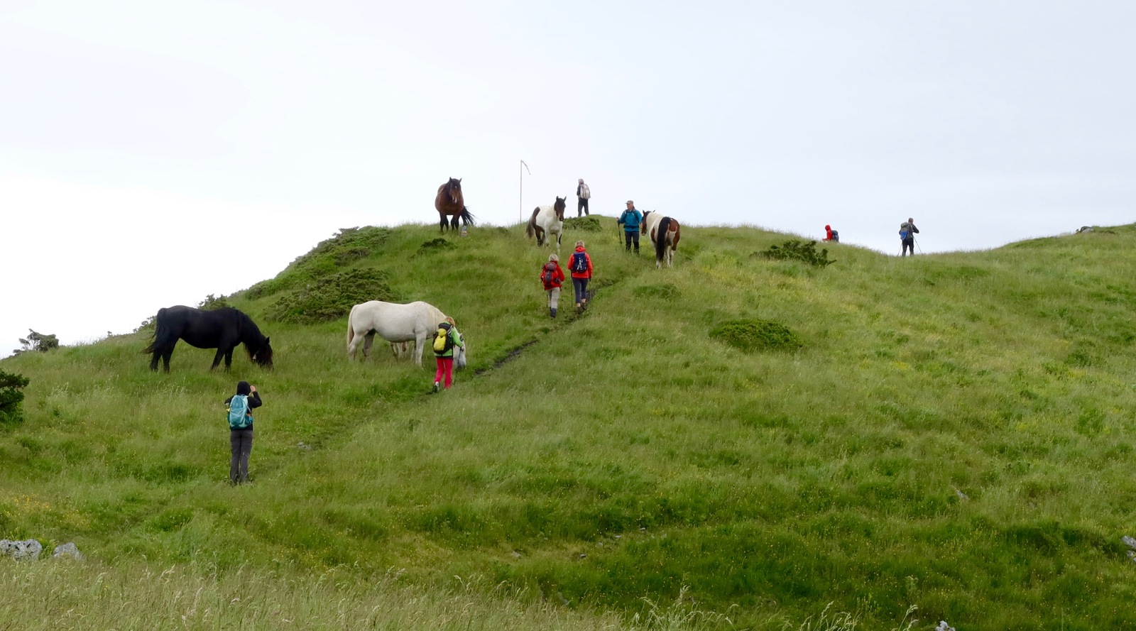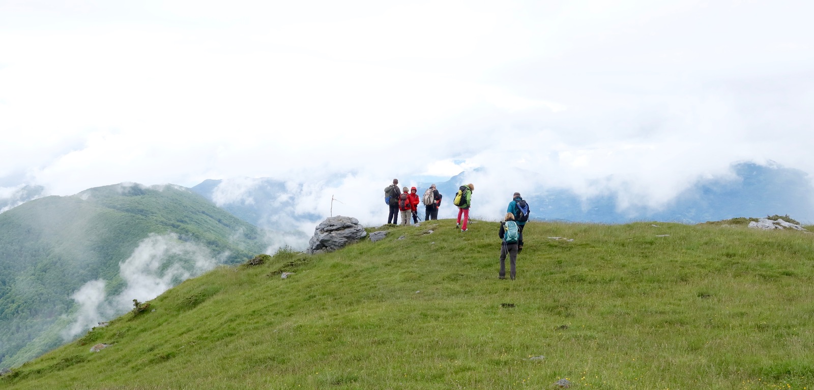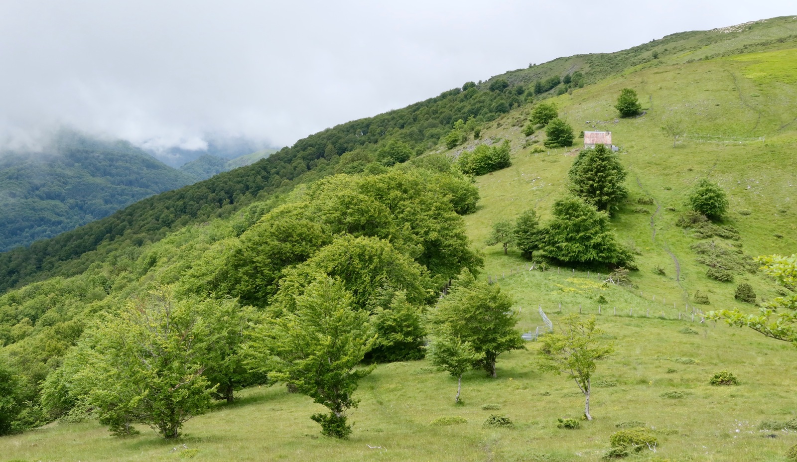 Le Pic de la Calabasse (2200m) étant probablement ennuagé, Christian nous a guidé vers le sommet de Cornudère, plus bas en altitude... Mais l'ascencion fut une grimpète ariégoise quand même, agrémentée d'une pause de cueillette girolles... La crête de Cornudère étant toujours dans la brume, la cabane fut la bienvenue pour la pause déjeuner. Mais tout juste assez grande pour notre petit groupe (9). En montant ensuite au sommet, quelques coins de ciel bleu apparurent, la descente par les hameaux de Galey, Augirein et Orchain fut sympathique, de même que la pause raffraichissante à Aspet... A une prochaine.