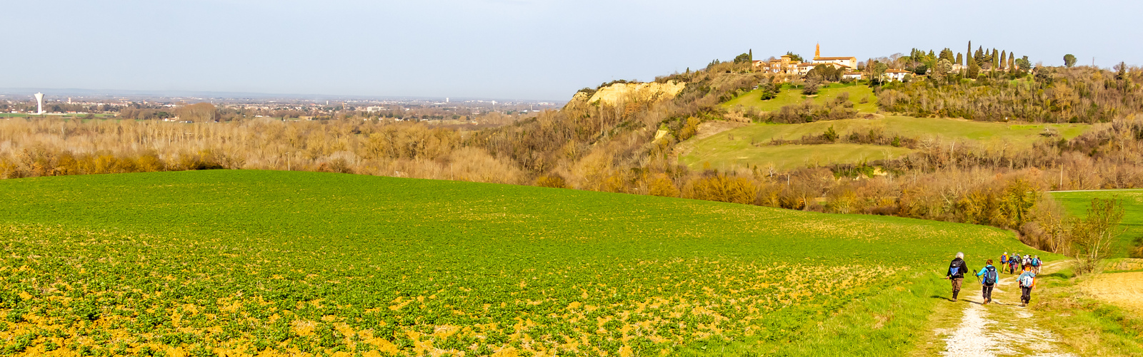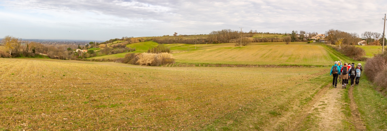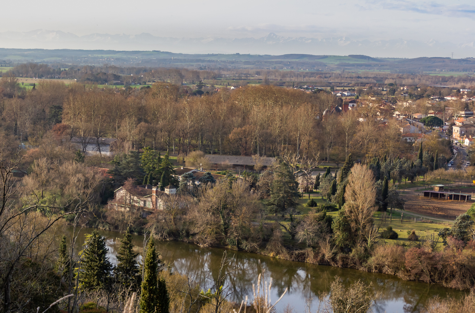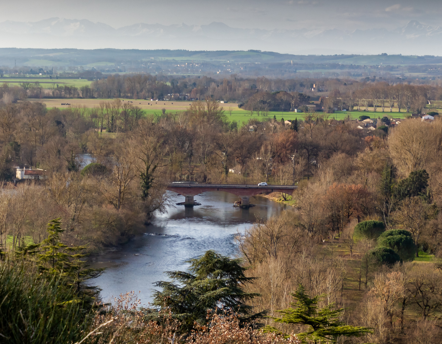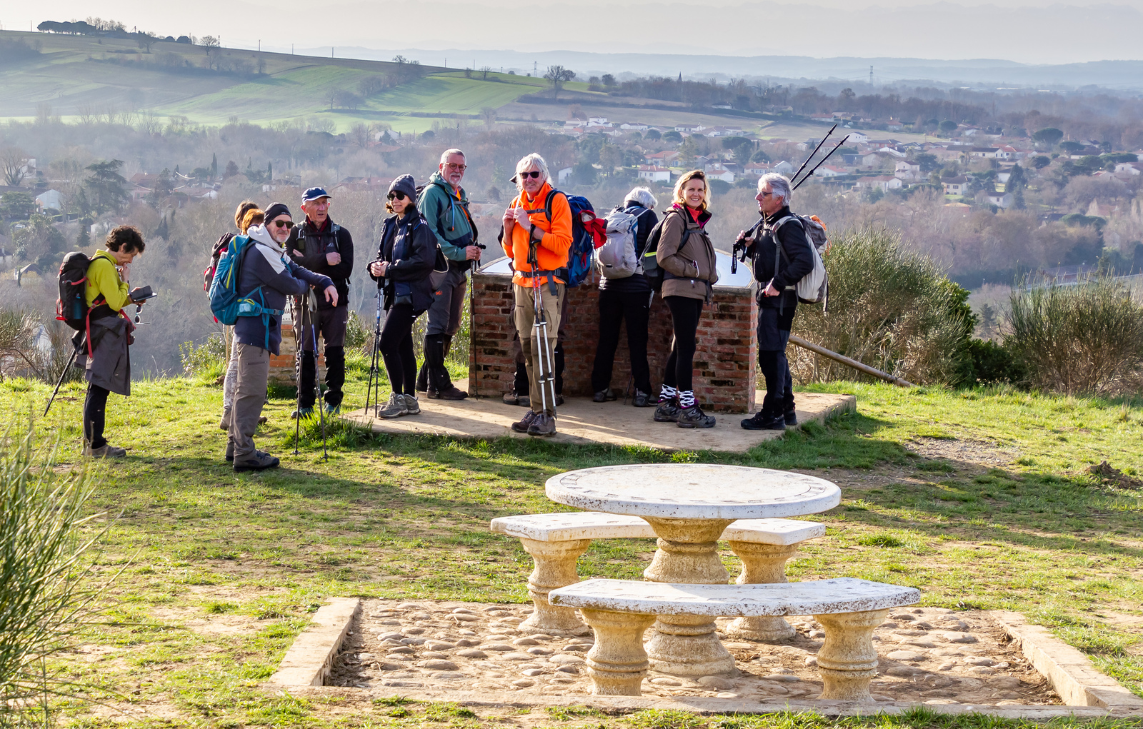 Poursuite au bord du plateau jusqu'à la table d'orientation de Venerque, belle vue sur la vallée de l'Ariège et sur les Pyrénées embrumées. Pause en-cas. Belle vue sur Venerque. Descente abrupte sur Venerque pour arriver quai de Rive d'Eau, traversée de la D19 (Avenue JP d'Assezat), tour de l'église fortifiée par la rue du Cloitre, place Saint Pierre, avenue des Pyrénées, et sortie de la ville par la D35 (grand rue de Rémusat), avenue du Dr Guilhem, rue de Pech David. Belle montée sur le Pech par d'abord la rue Jolimont puis un chemin ; sortie du plateau par la route de Pech David et le chemin de Crouzille. Poursuite par le chemin A Tarabe, le chemin des Maridats, le chemin de St Maurice jusqu'à Rive d'Aygue.