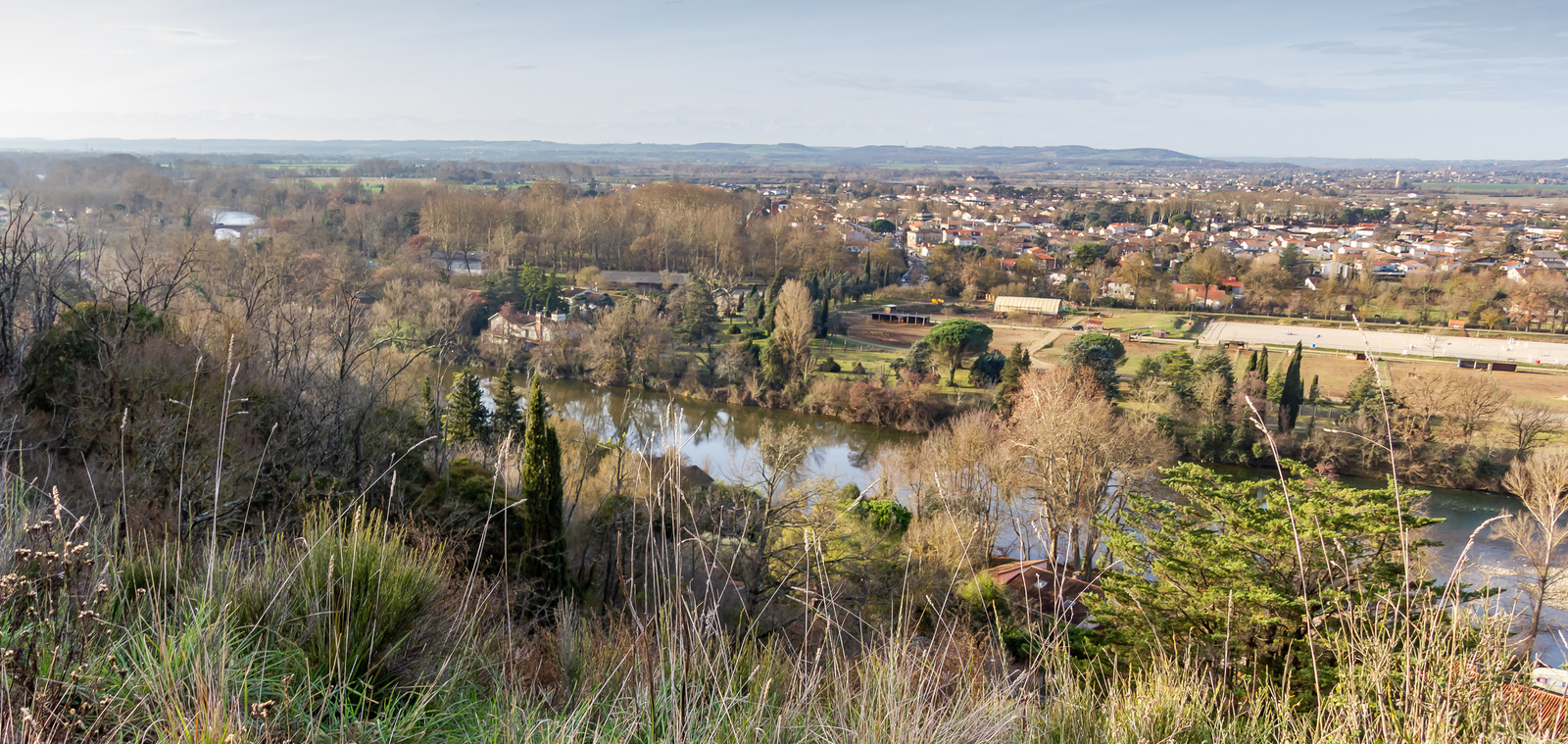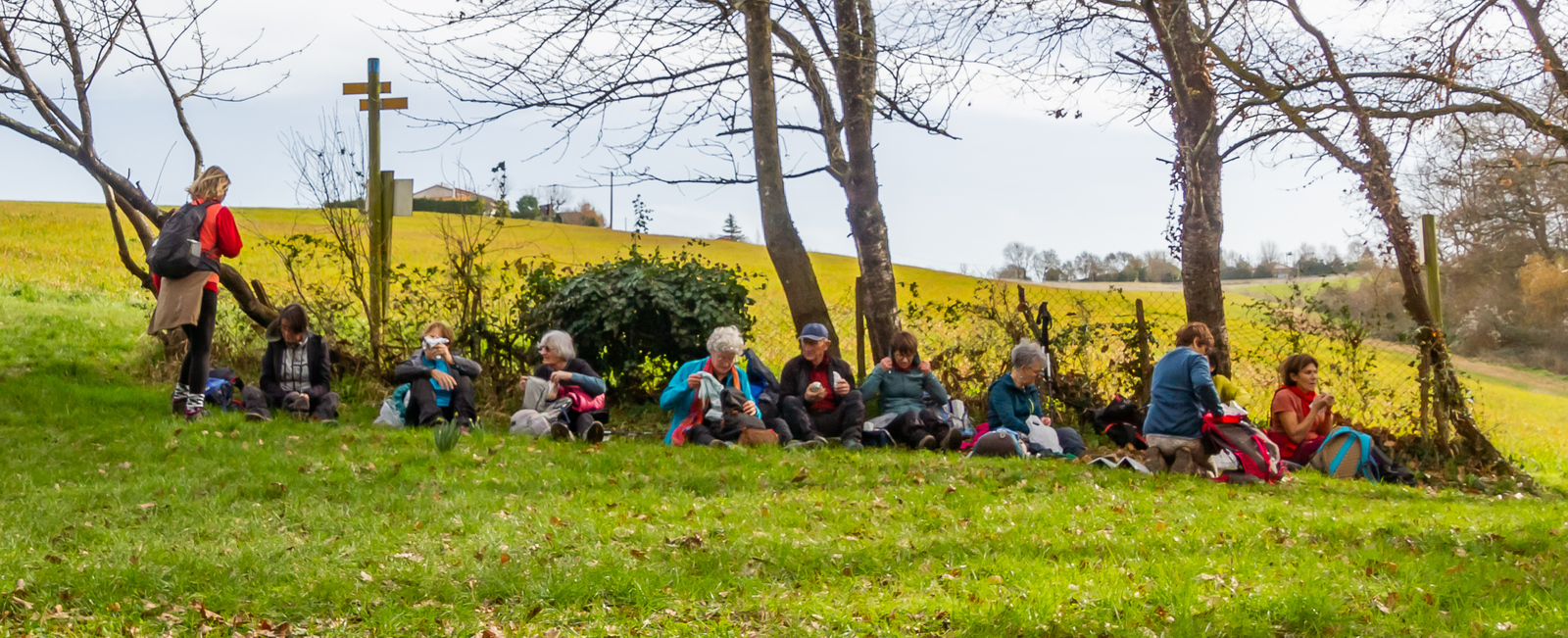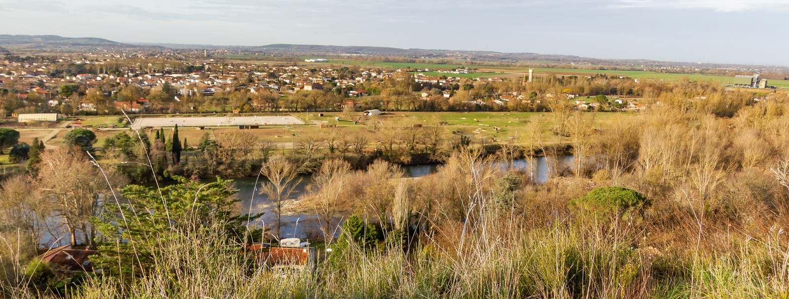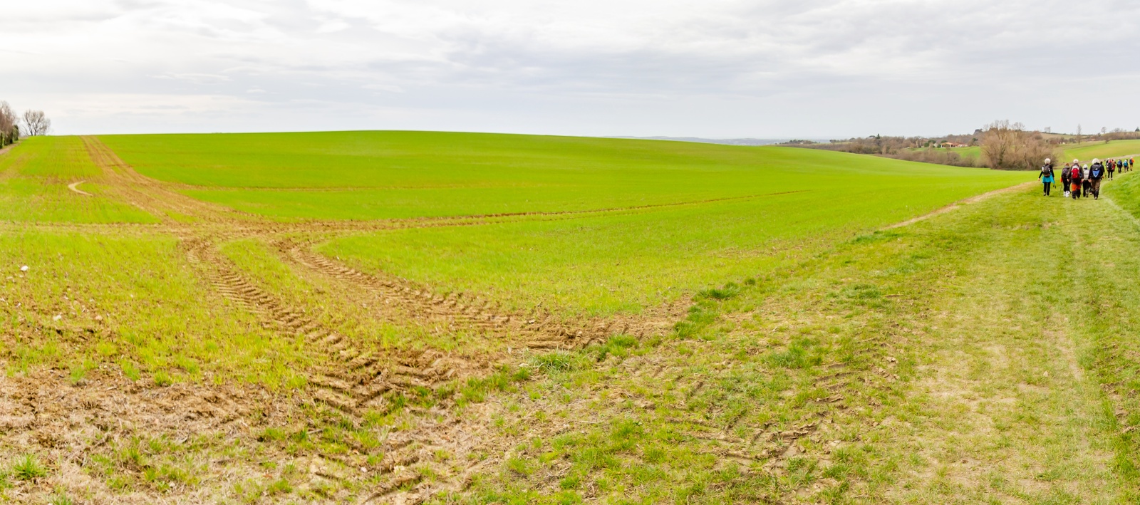 Poursuite au bord du plateau jusqu'à la table d'orientation de Venerque, belle vue sur la vallée de l'Ariège et sur les Pyrénées embrumées. Pause en-cas. Belle vue sur Venerque. Descente abrupte sur Venerque pour arriver quai de Rive d'Eau, traversée de la D19 (Avenue JP d'Assezat), tour de l'église fortifiée par la rue du Cloitre, place Saint Pierre, avenue des Pyrénées, et sortie de la ville par la D35 (grand rue de Rémusat), avenue du Dr Guilhem, rue de Pech David. Belle montée sur le Pech par d'abord la rue Jolimont puis un chemin ; sortie du plateau par la route de Pech David et le chemin de Crouzille. Poursuite par le chemin A Tarabe, le chemin des Maridats, le chemin de St Maurice jusqu'à Rive d'Aygue.