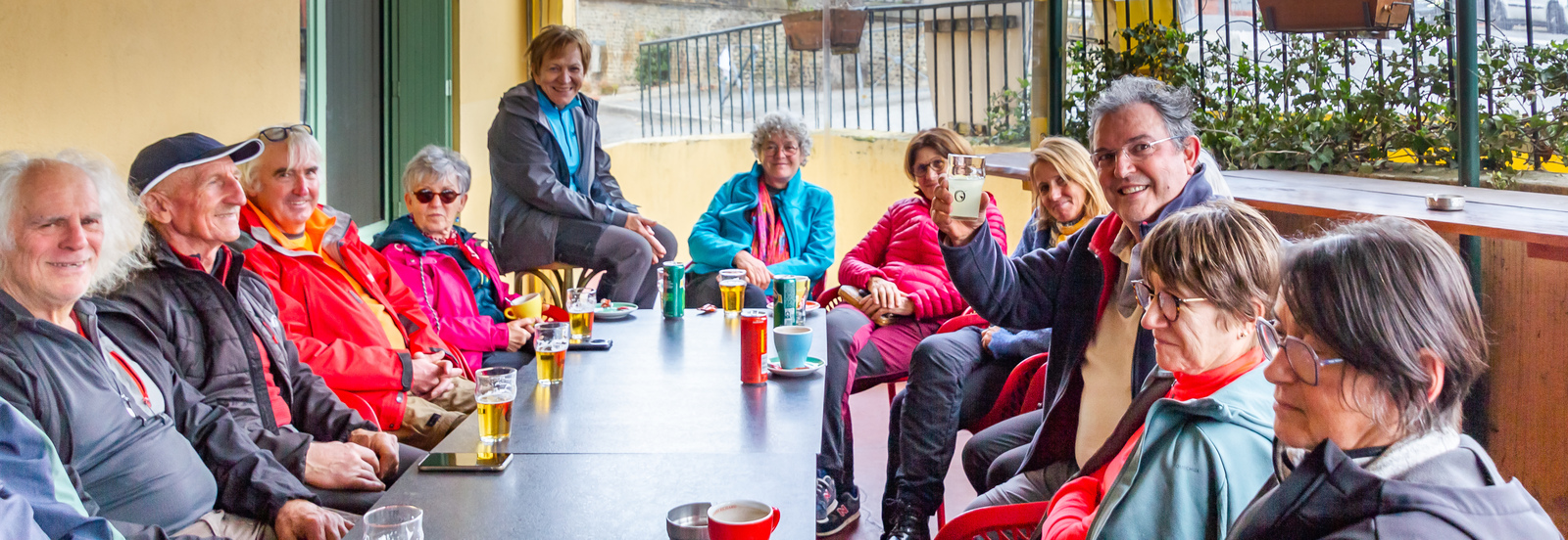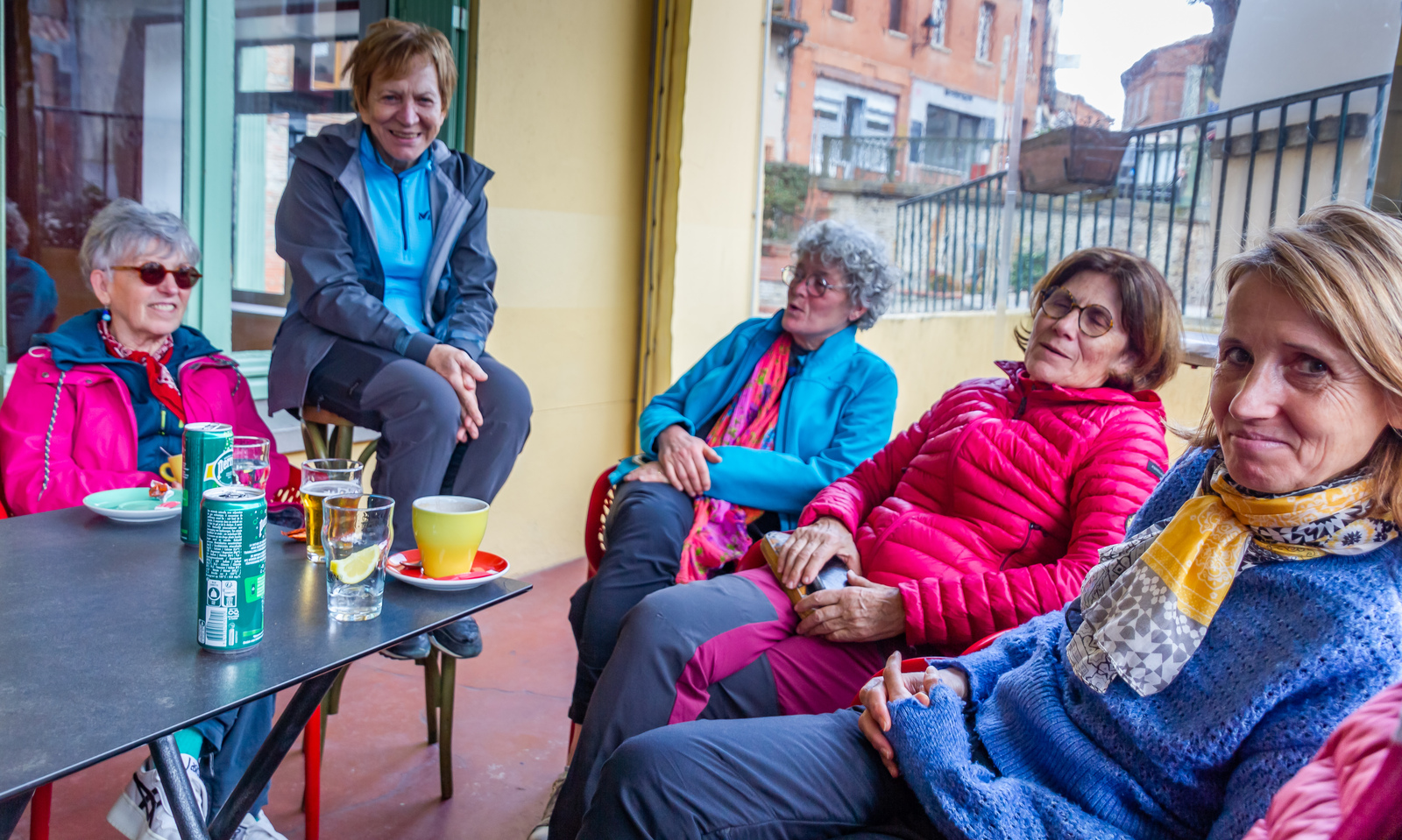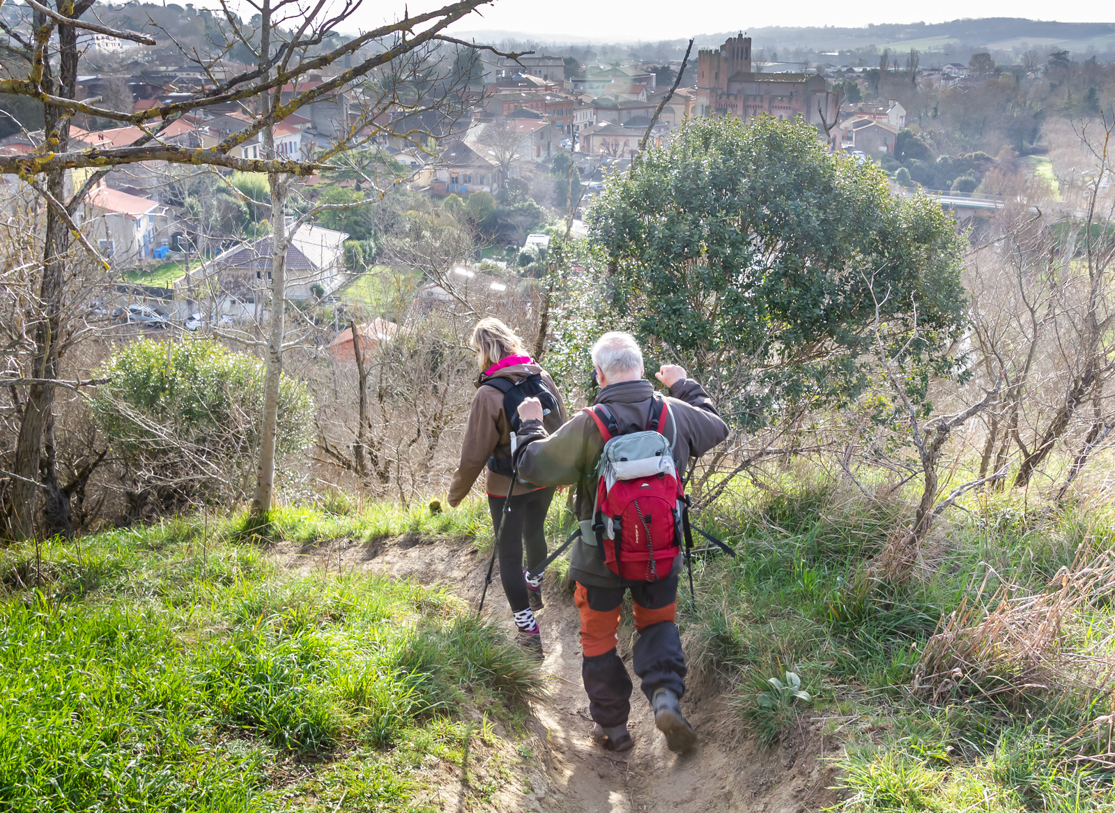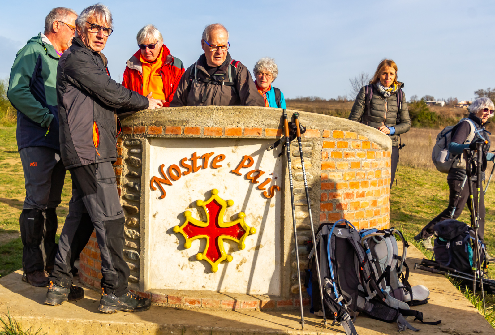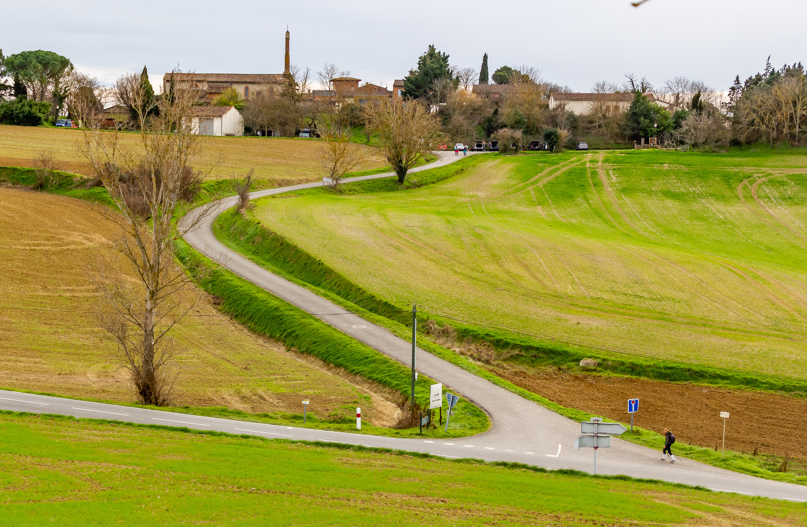 Poursuite au bord du plateau jusqu'à la table d'orientation de Venerque, belle vue sur la vallée de l'Ariège et sur les Pyrénées embrumées. Pause en-cas. Belle vue sur Venerque. Descente abrupte sur Venerque pour arriver quai de Rive d'Eau, traversée de la D19 (Avenue JP d'Assezat), tour de l'église fortifiée par la rue du Cloitre, place Saint Pierre, avenue des Pyrénées, et sortie de la ville par la D35 (grand rue de Rémusat), avenue du Dr Guilhem, rue de Pech David. Belle montée sur le Pech par d'abord la rue Jolimont puis un chemin ; sortie du plateau par la route de Pech David et le chemin de Crouzille. Poursuite par le chemin A Tarabe, le chemin des Maridats, le chemin de St Maurice jusqu'à Rive d'Aygue.