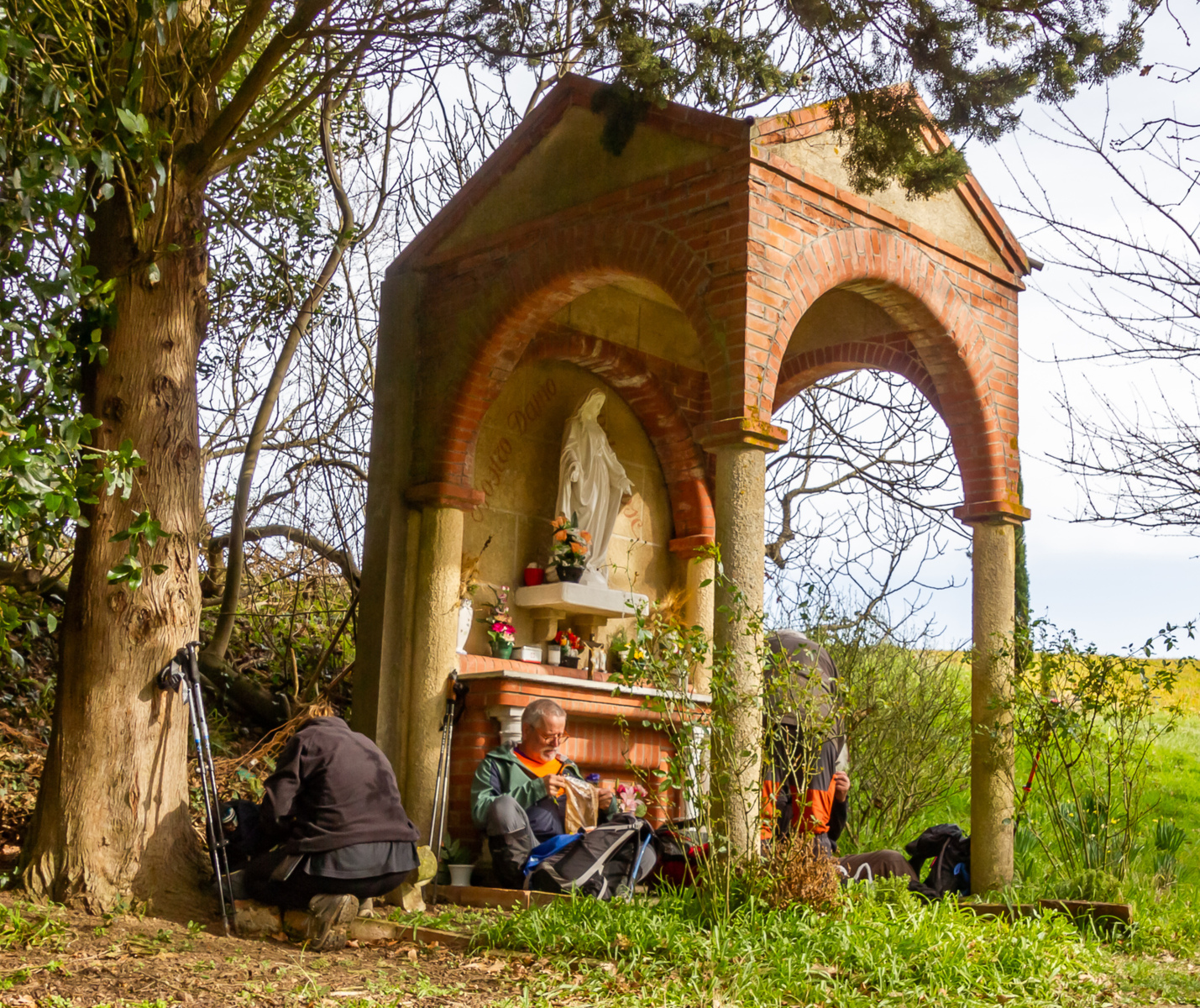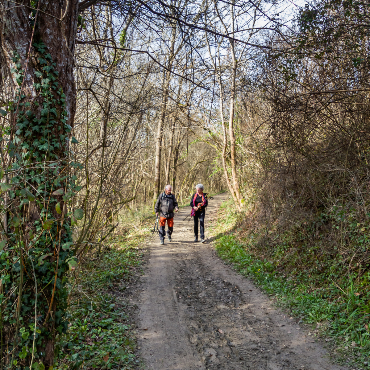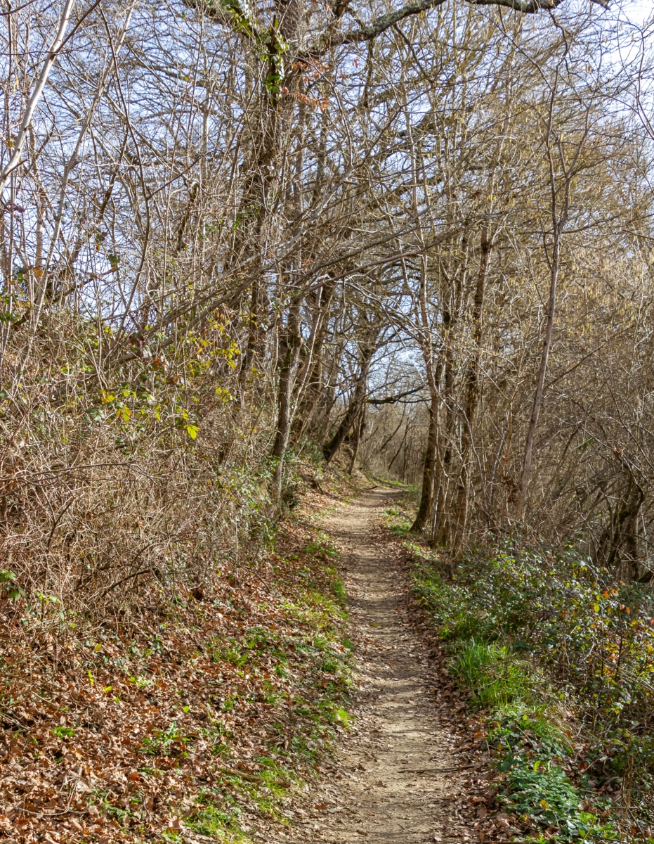 Chemin dans un vallon, le long du ruisseau Notre Dame, traversée de la D5( (route de Venerque) poursuite sur le chemin Notre Dame jusqu'à une montée pour rejoindre l'oratoire Notre Dame des Bois, lieu de la pause repas.