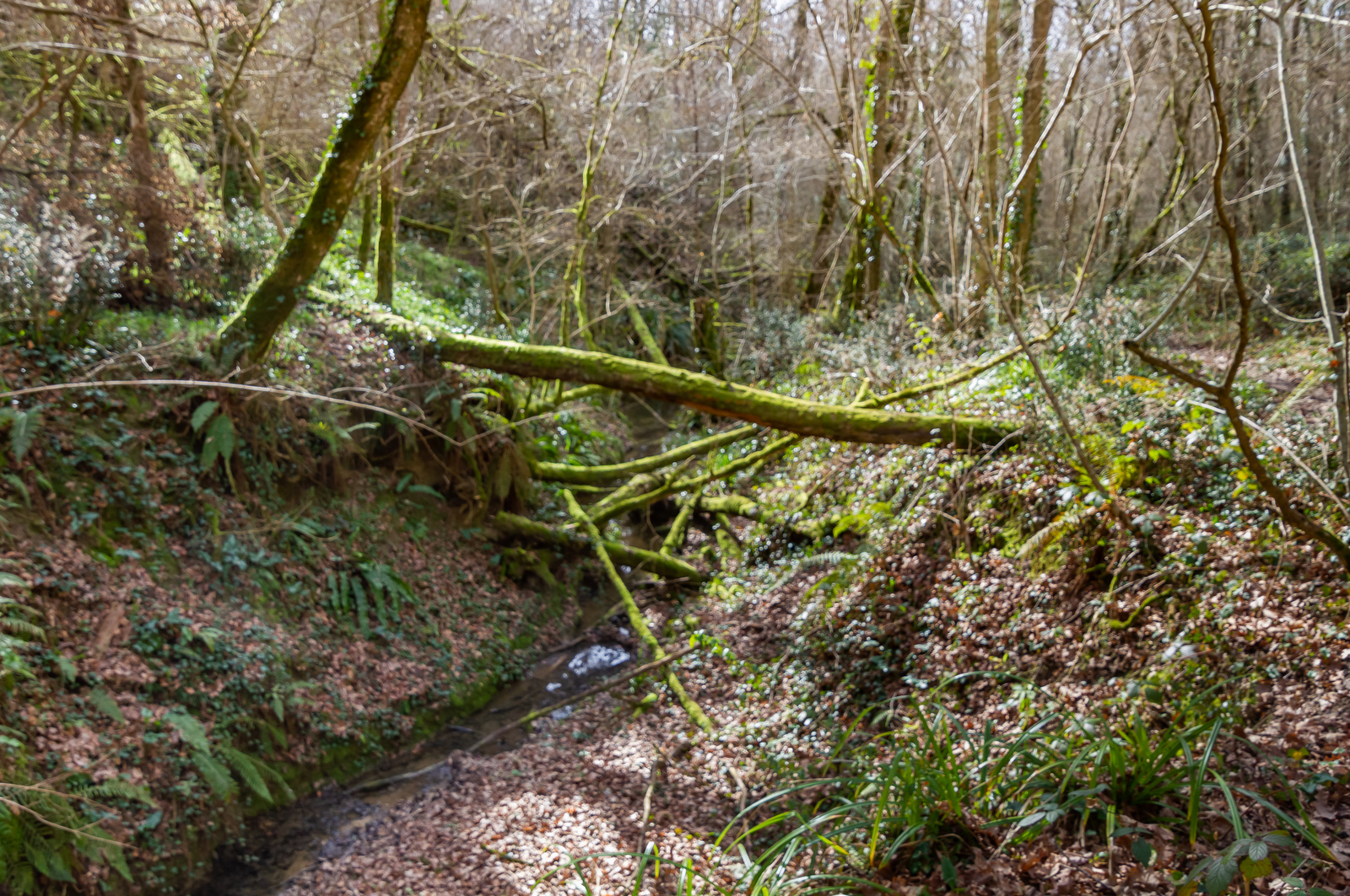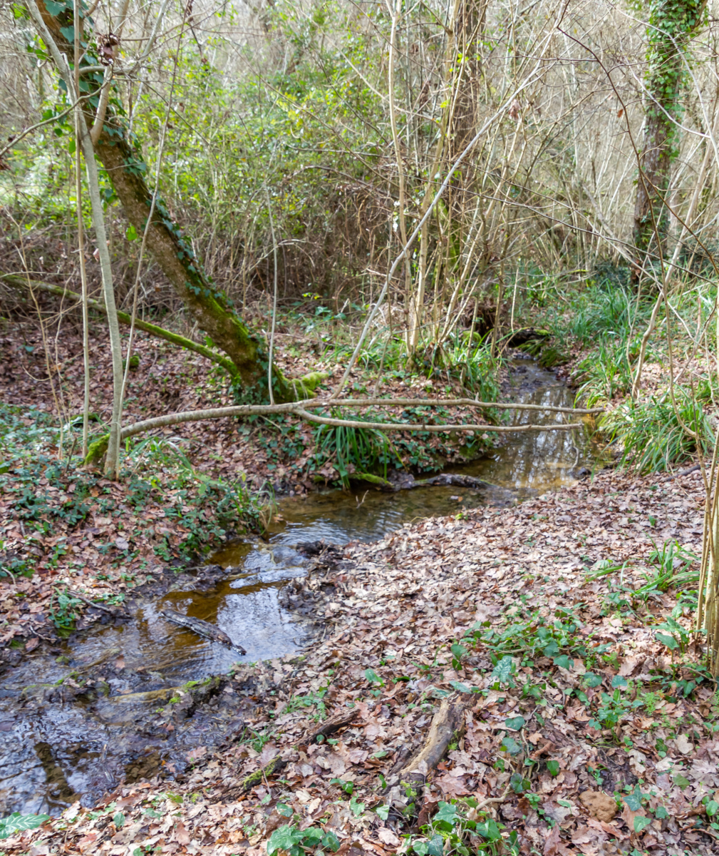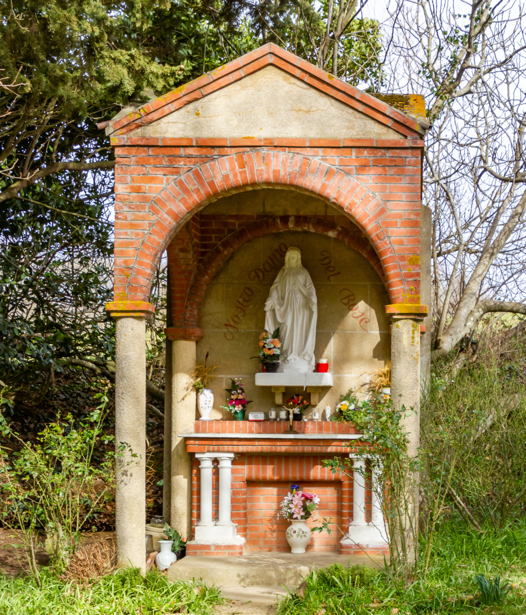 Chemin dans un vallon, le long du ruisseau Notre Dame, traversée de la D5( (route de Venerque) poursuite sur le chemin Notre Dame jusqu'à une montée pour rejoindre l'oratoire Notre Dame des Bois, lieu de la pause repas.