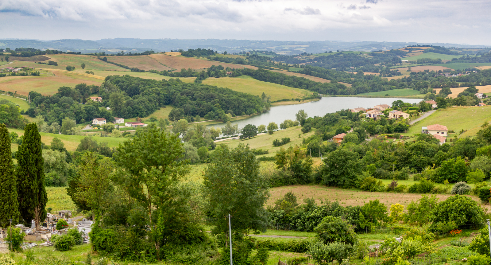 Départ partking au bord du lac,, passage devant la base de loisirs puis sur le barrage , montée vers Charron puis St Maychens. Poursuite vers Cabanac, puis Bellecoste, et Barthes. Cheminement à proximité de Peyrès, puis Douilh du Bas jusqu'aux ruines du Chateau de Gelis.