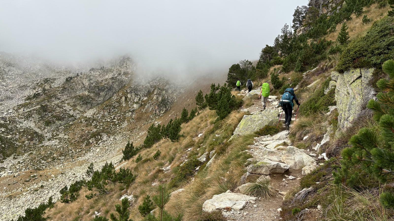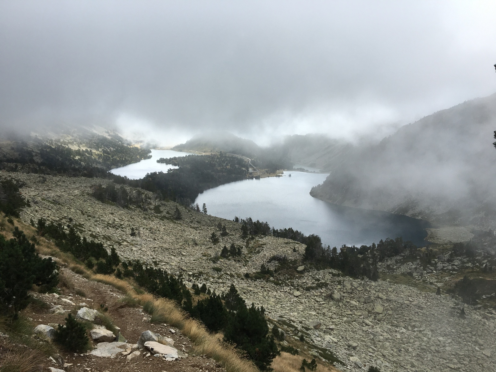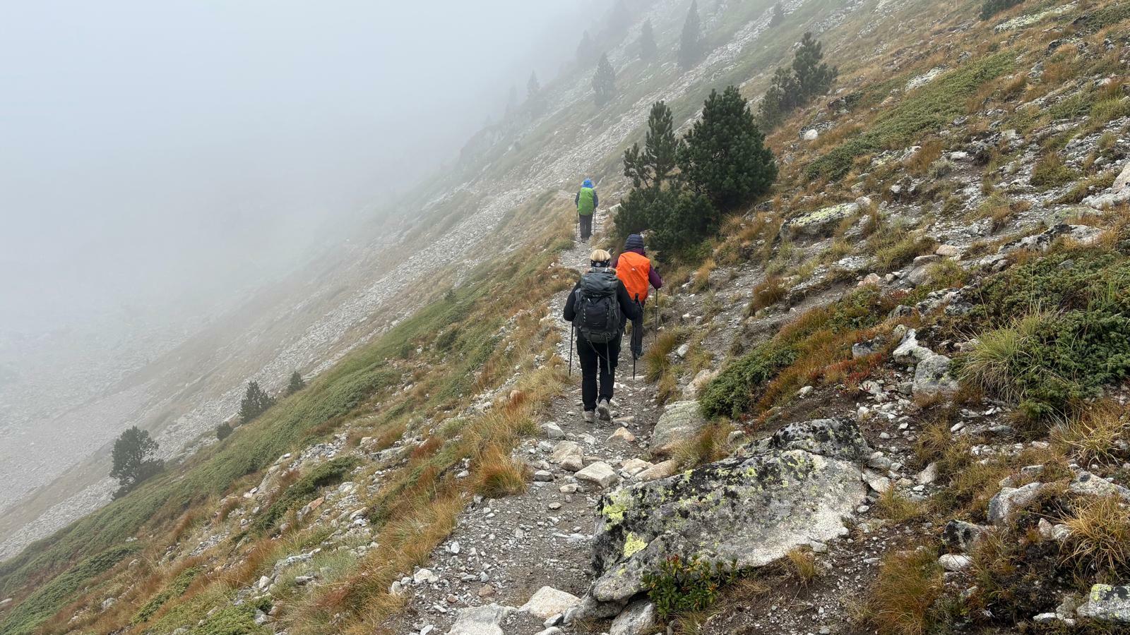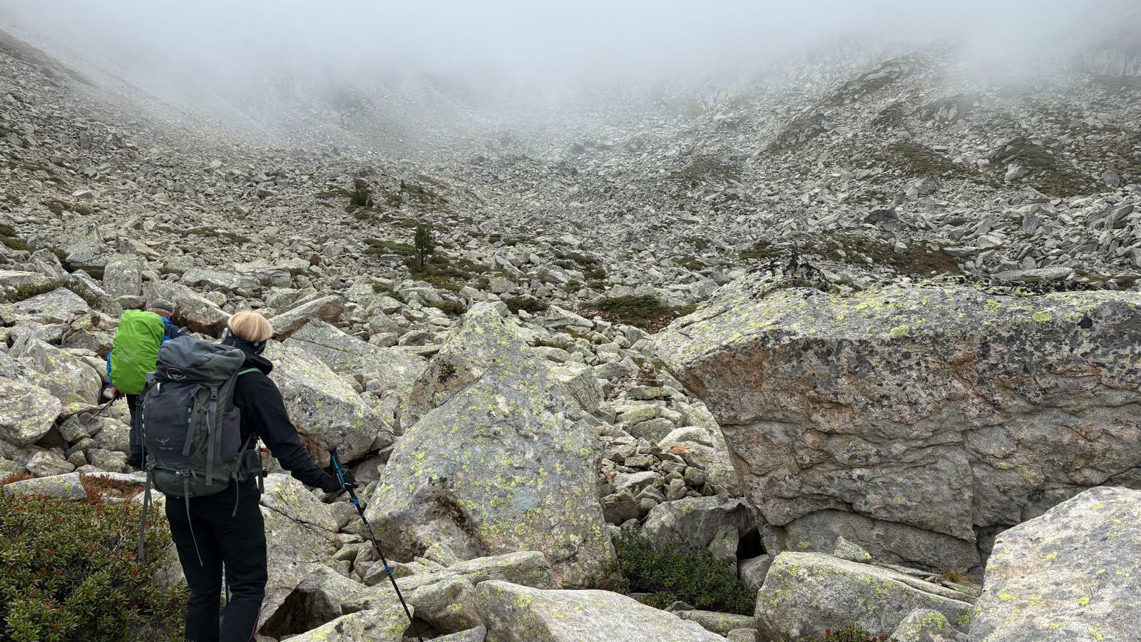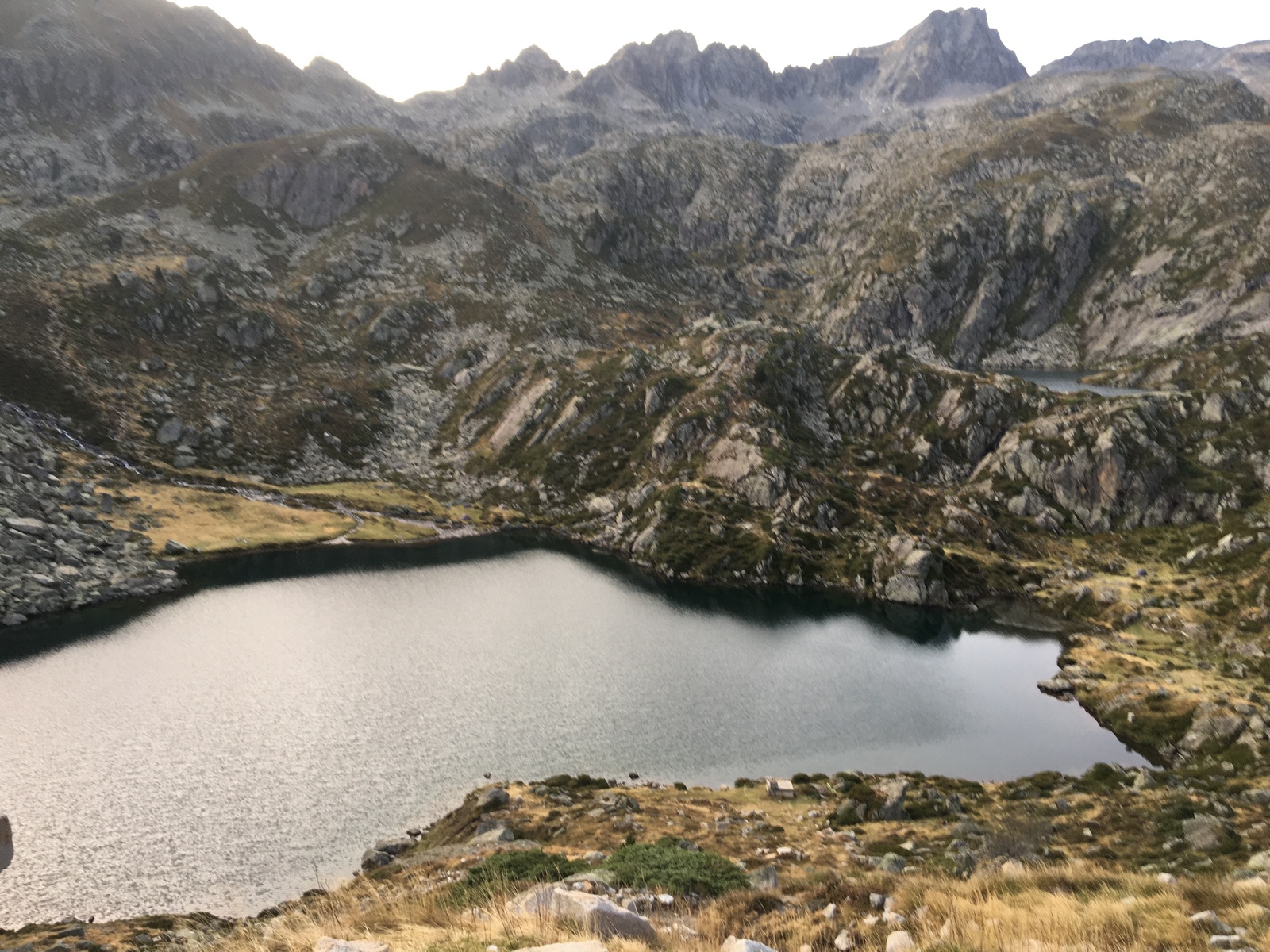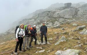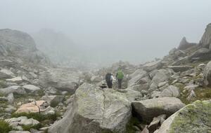 3 jours tour des lacs de Neouvielle 1er jour lac d'Oredon refuge de la Glere 11Km dénivelé + 900 m -600 m Départ du parking d'Oredon avec de la bruine avec courage montée par les laquettes arrivée à Lac d'Aubert temps plus clair avec quelques passage de brume montée vers la Hourquette d'aubert avec les lac d'Aubert et Aumar en dessous pause casse croute passé par la Hourquette d'Aubert descente pour prendre la montée vers la Hourquette de Monicot 2547m montée raide avec passage rocheux descente vers refuge toujours aussi raide avec passage rocheux enfin on découvre le refuge de la Glere on contourne le lac de laGlere et petite montée vers le refuge repos bien mérité quel panorama !!!
