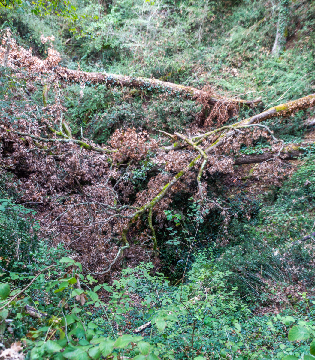 Suite vers Asquéhès, Barré, Bezin, le gouffre de la Hobio puis vers Moulin du Plan en traversant l'Arrats. Après la traversée de la D928 direction la Peyrette sur la D12, la Fontaine du Bourreau, les Lisses pour monter et passer à nouveau la D12 vers le Petit Malehaut.